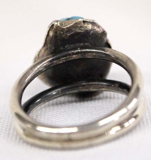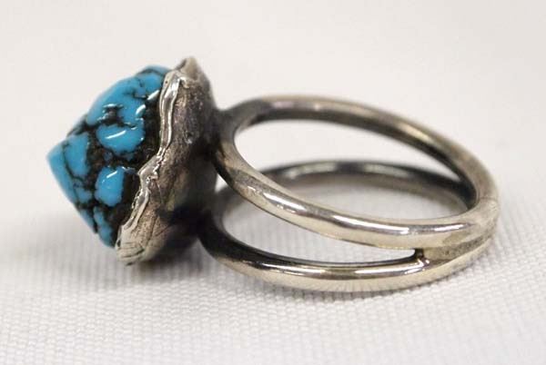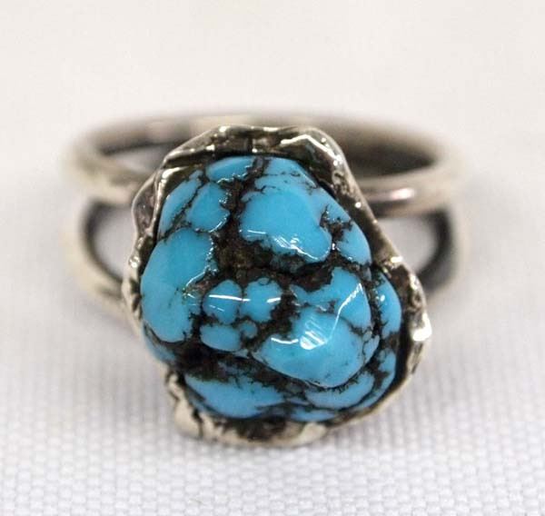 Native American Navajo Sterling Silver Turquoise Nugget Ring, Size 7.5, 8.8g in total wt.