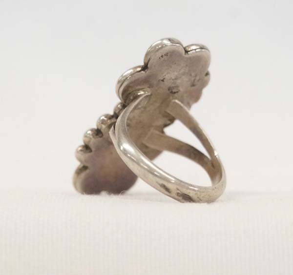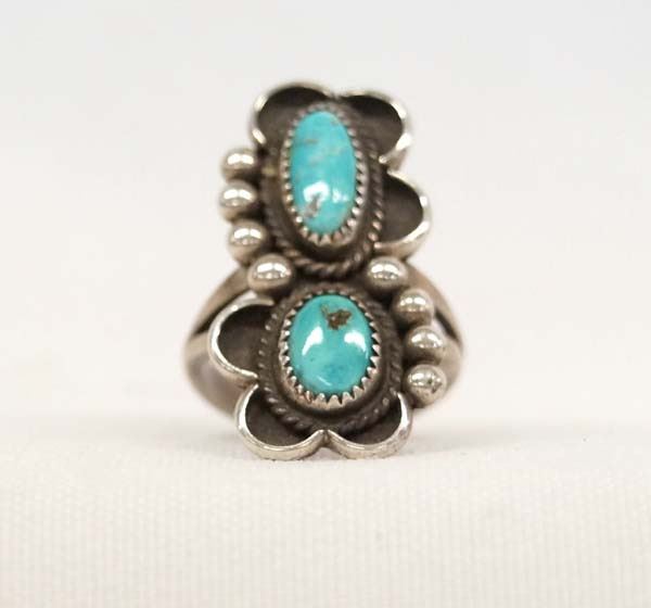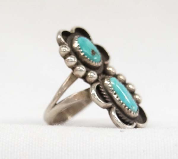 Native American Navajo Sterling Silver Turquoise Ring, Size 8.5, measures 1.25''L