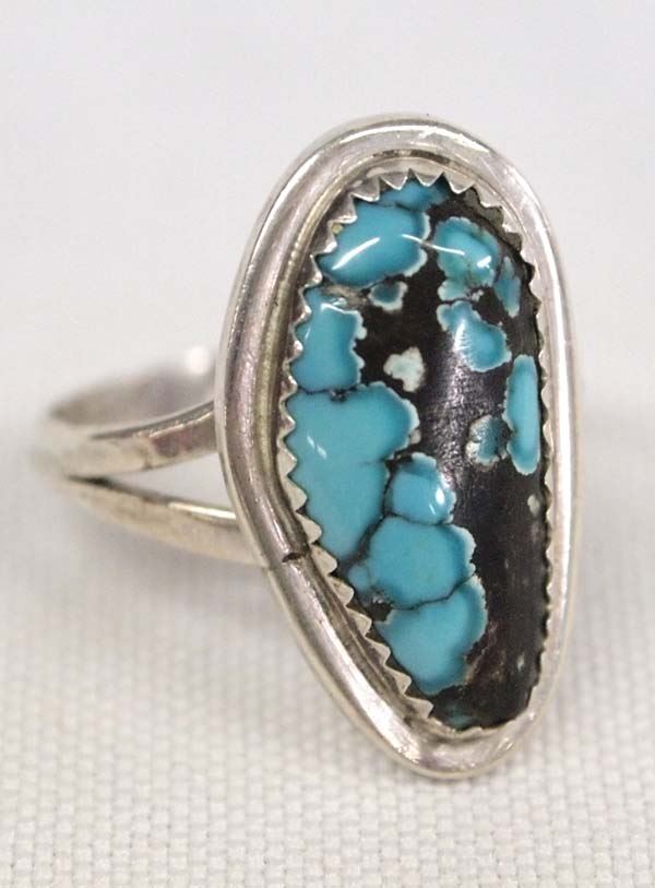 Native American Navajo Sterling Silver Turquoise Ring, Size 8.75, measures 7/8''L x .25''W, stunningly beautiful turquoise cabochon, 4.4g in total wt.