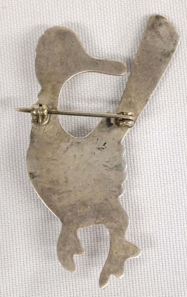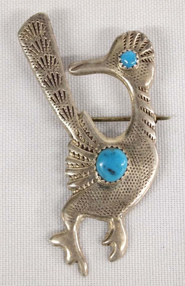 Native American Navajo Sterling Silver Turquoise Roadrunner Pin, measures 2 3/8''L x 1.25''W, 11.14g in total wt.