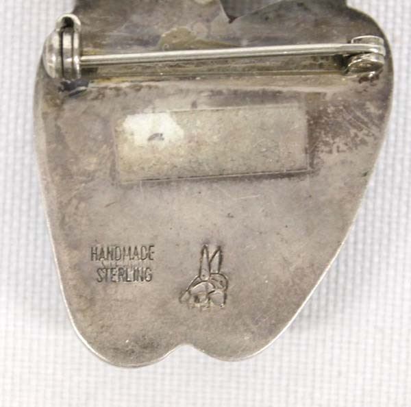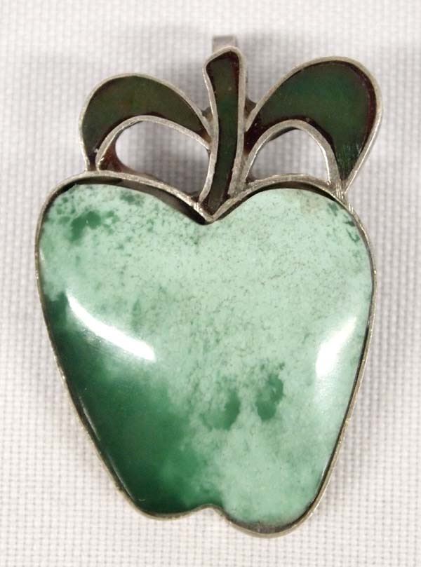 Native American Navajo Sterling Silver Varisite Apple Pin Pendant, measures 1.5''L x 1''W, hallmarked with hummingbird and stamped sterling,