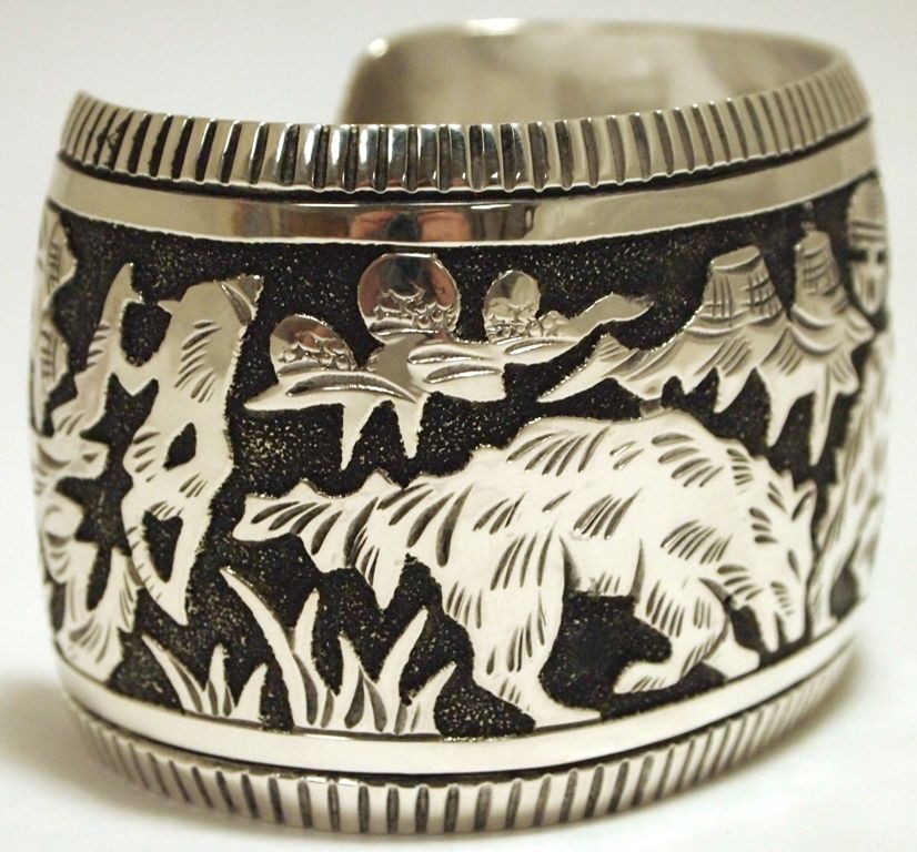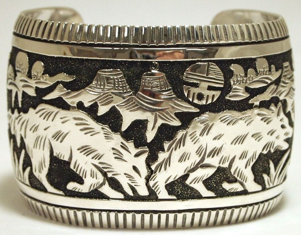 Navajo Sterling Silver Wolves Cuff Bracelet - Richard Singer