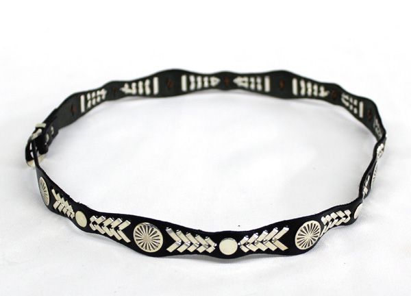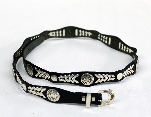 Navajo Sterling Silver Conchos on Leather Hat Band, end to end measurement 26.5''L x .75''W.