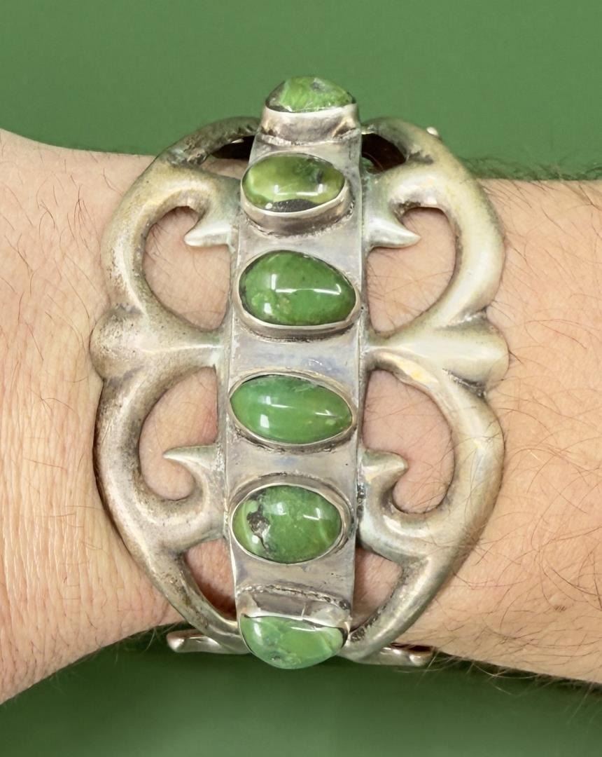 Very nice Old Pawn Sandcast Sterling Silver Bracelet. 2 5/8" by 2" by 1 3/4". 76.64 grams.