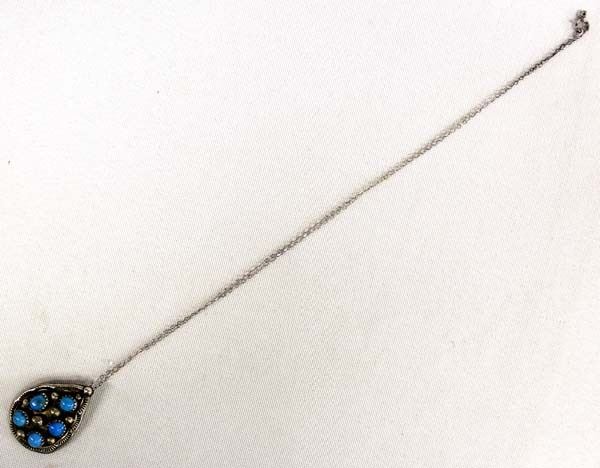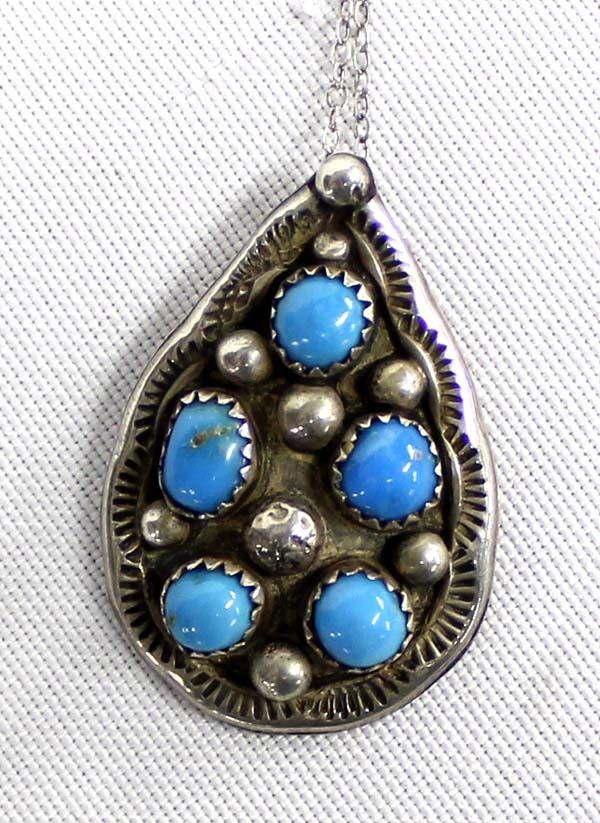 Native American Navajo Sterling Turqoise Pendant Necklace, pendant measures 1.25''L x 1'', sterling chain measures 18''L end to end