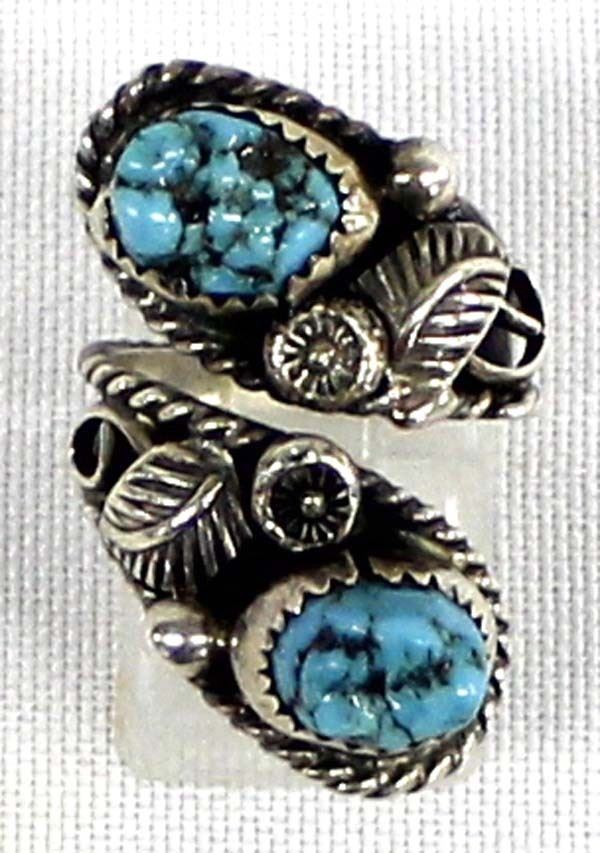 Native American Navajo Sterling Turquoise Adjustable Ring, measures 1.25