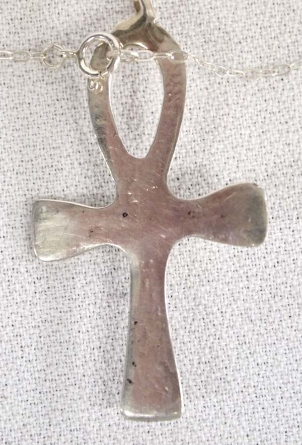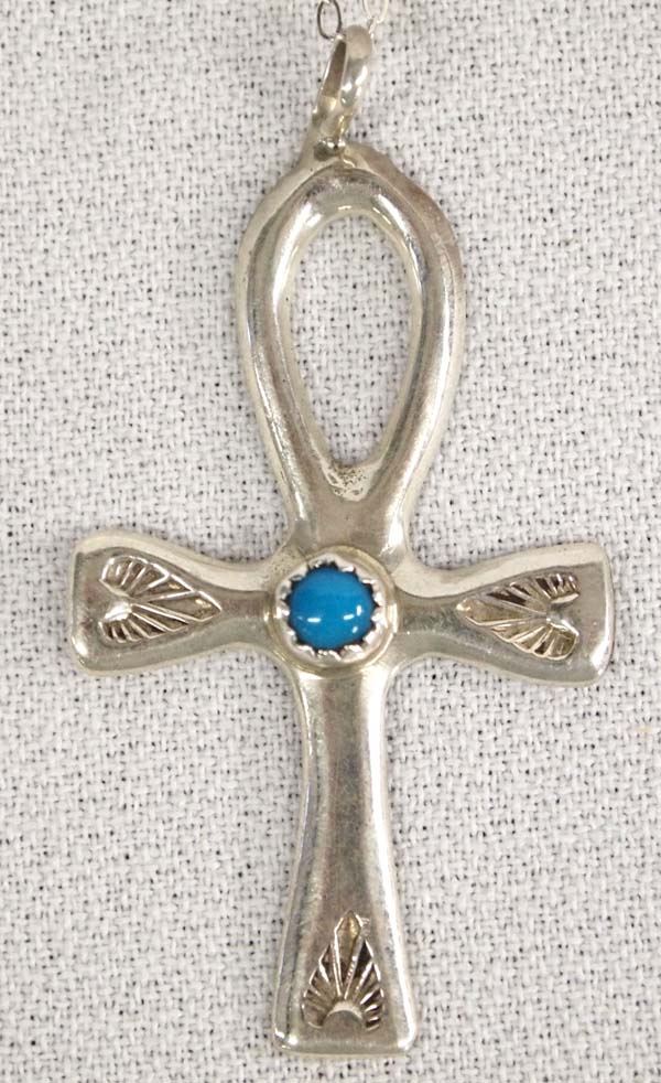 Native American Navajo Sterling Turquoise Ankh Pendant Necklace, chain measures 18'' end to end, pendant measures 1.75''L x 1''W, 5.3g in total wt.