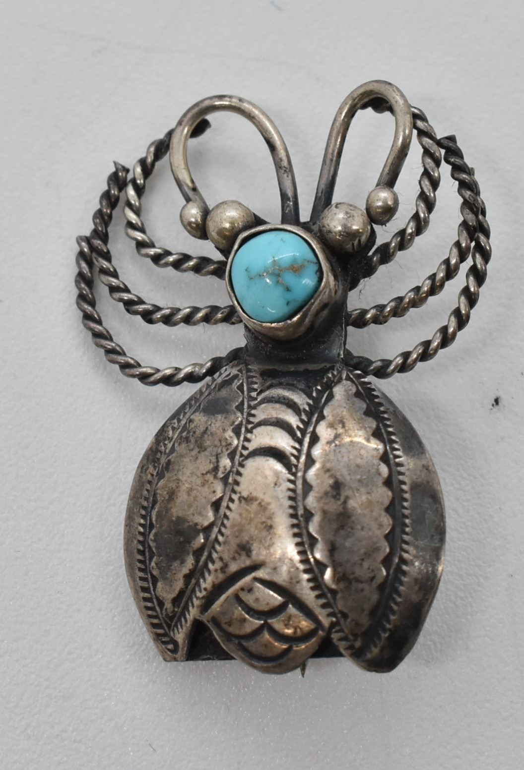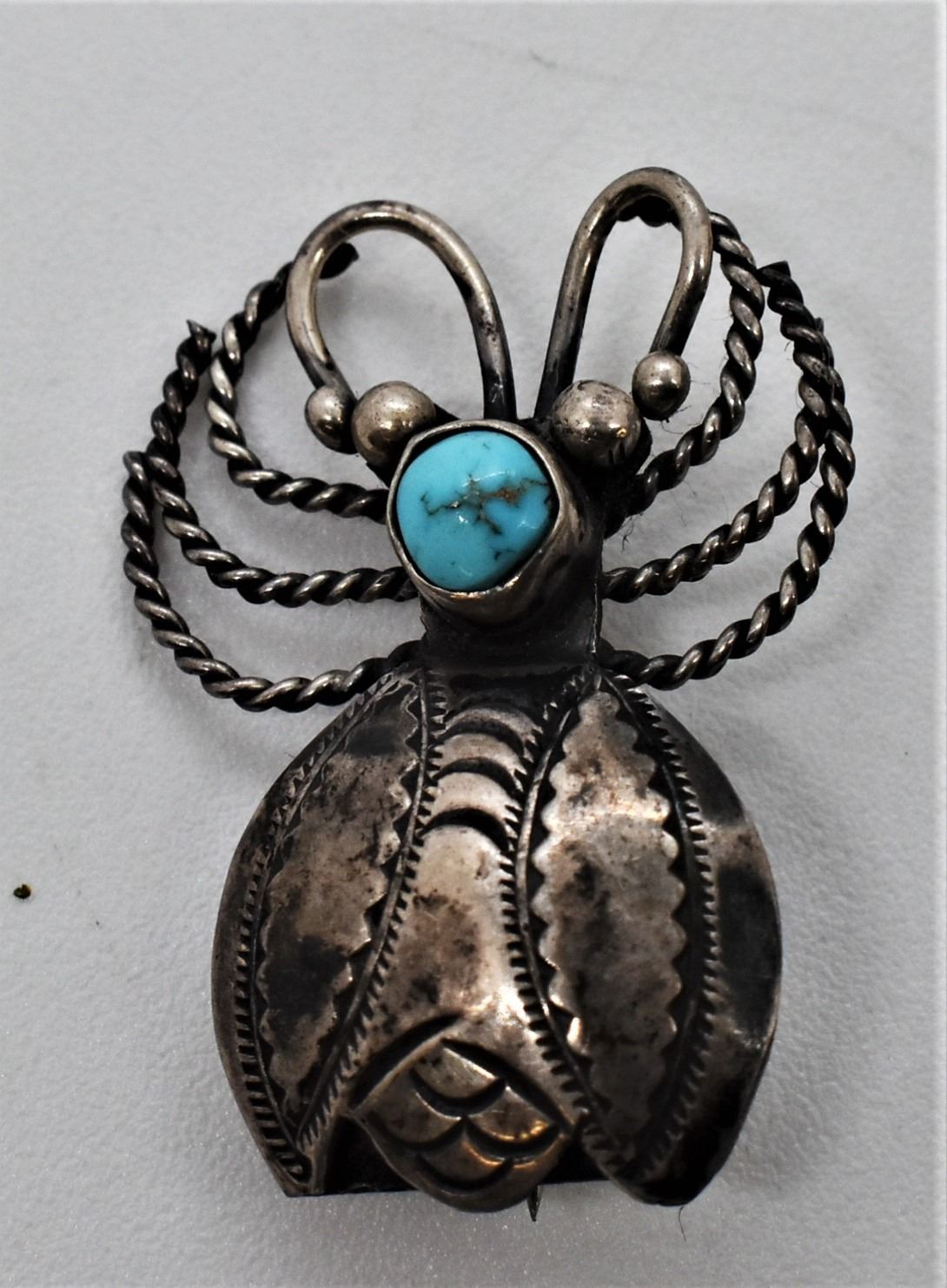 Vintage Native American Navajo Sterling Turquoise Beetle Pin, measures 1.5''L x .5''W, nice older pin