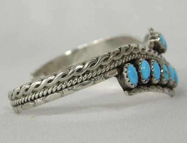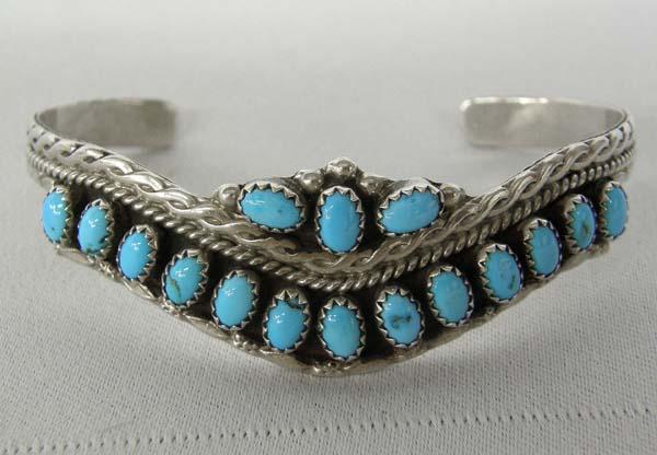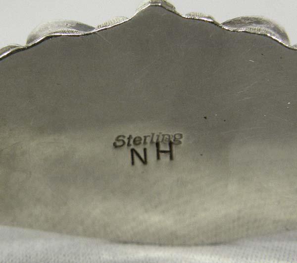 Navajo Sterling Silver Turquoise Bracelet Hallmarked ''NH'', has 16 clear blue turquoise stones, measures approx. 6 1/2''. SHI $15.