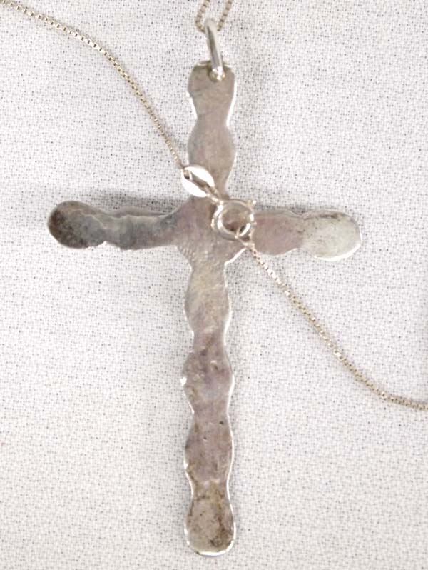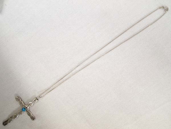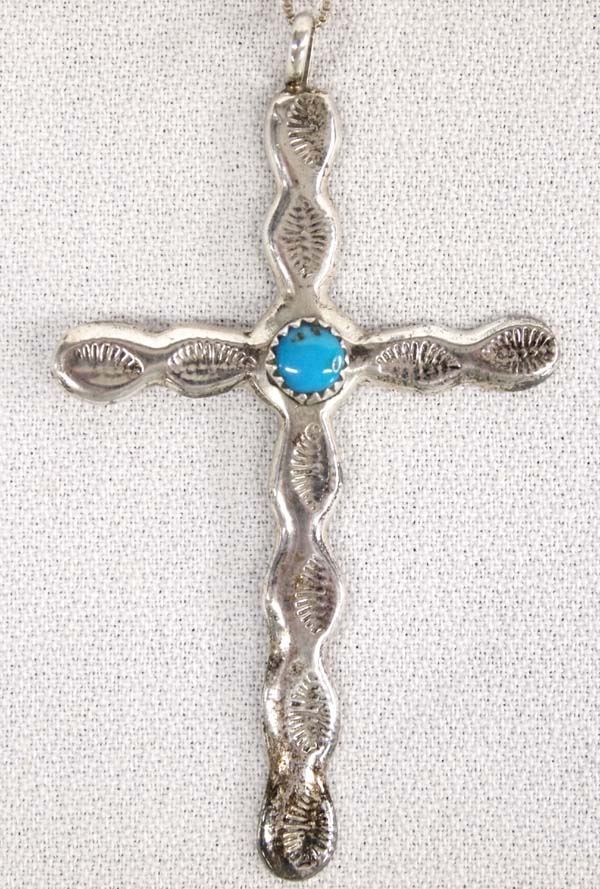 Native American Navajo Sterling Turquoise Cross Pendant Necklace, pendant measures 1.75''W x 3''L, 10.87g in total wt.