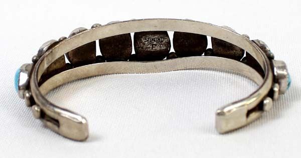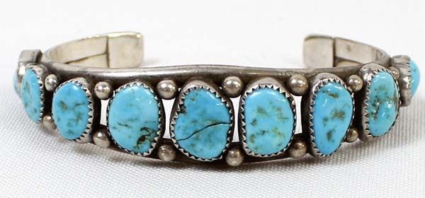 Native American Navajo Old Pawn Sterling Turquoise Cuff Bracelet, inside measures 6.5'' which includes the opening x .5''W, center stone is cracked, 33.43 gtw