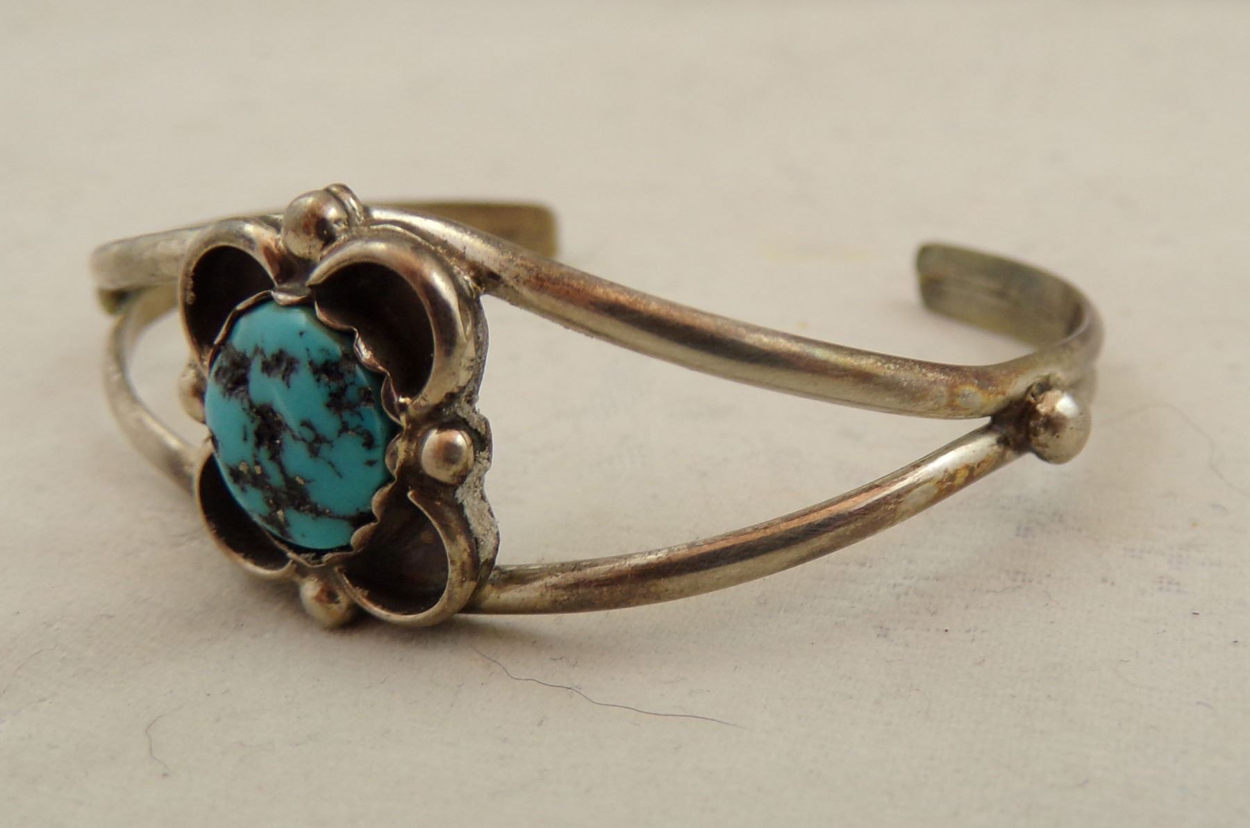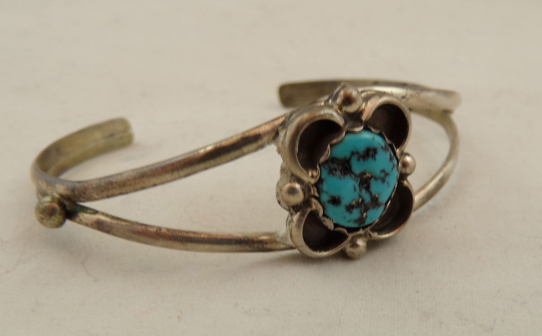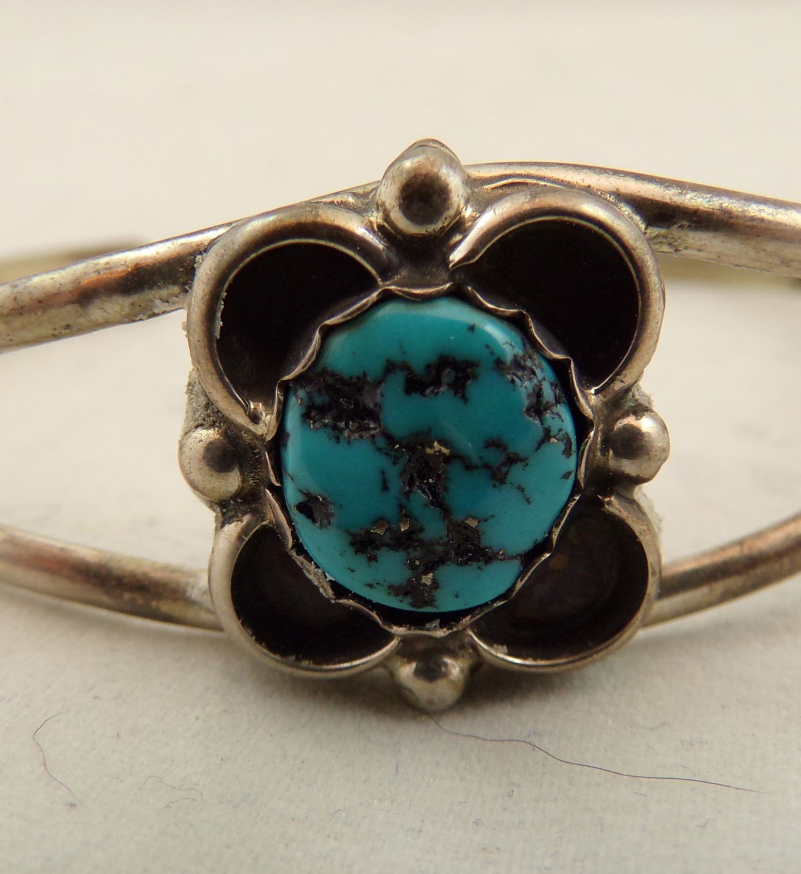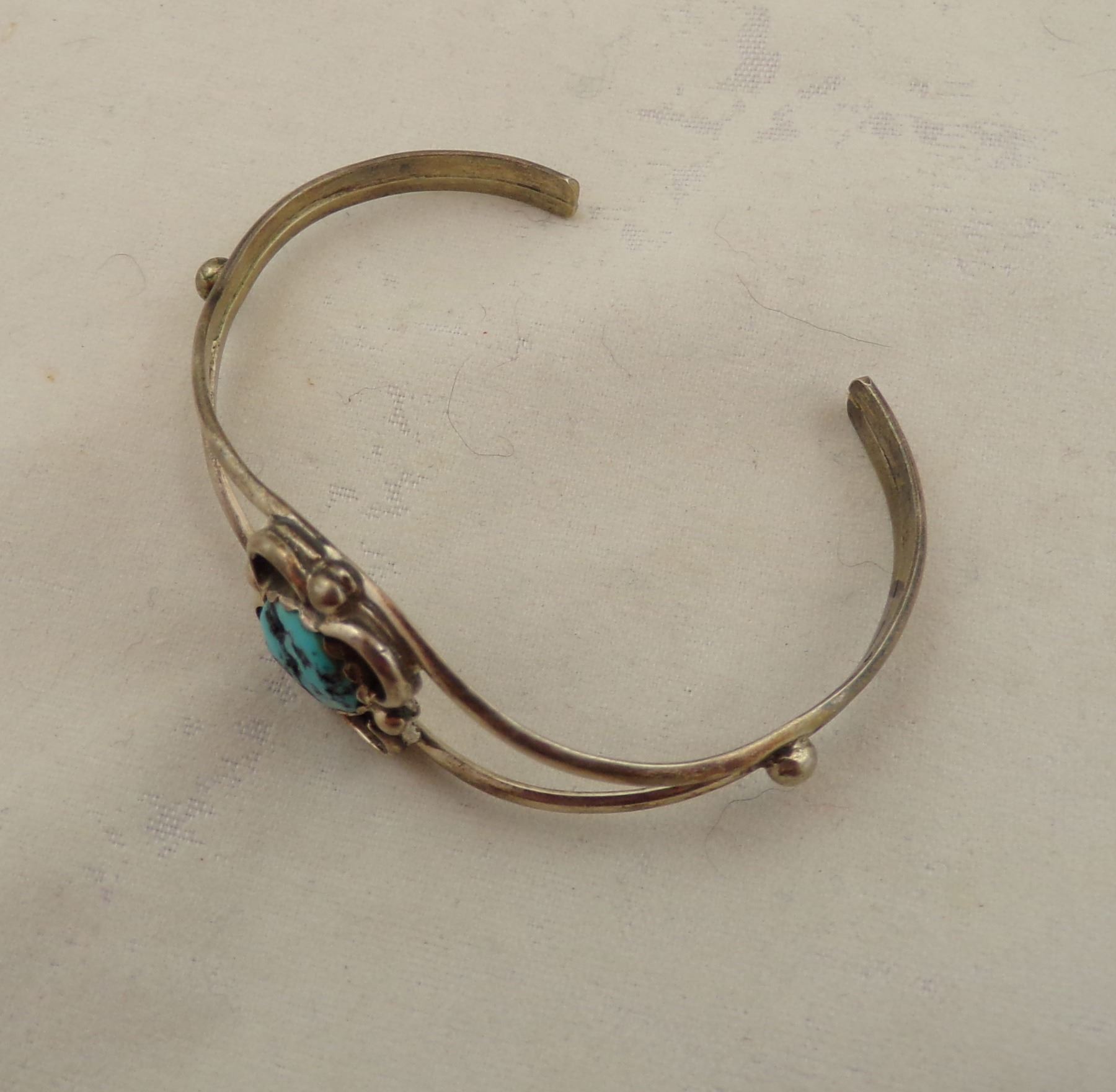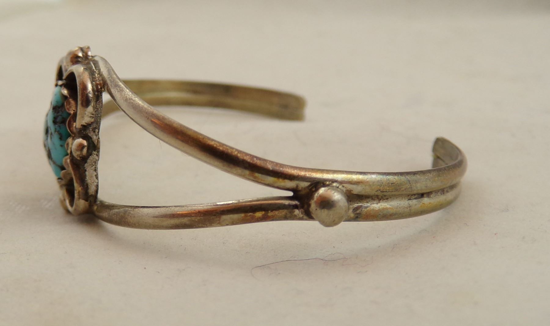 Native American Navajo Sterling Turquoise Cuff Bracelet, inside measures 6 3/8'' which includes the gap x .75''W, stamped sterling