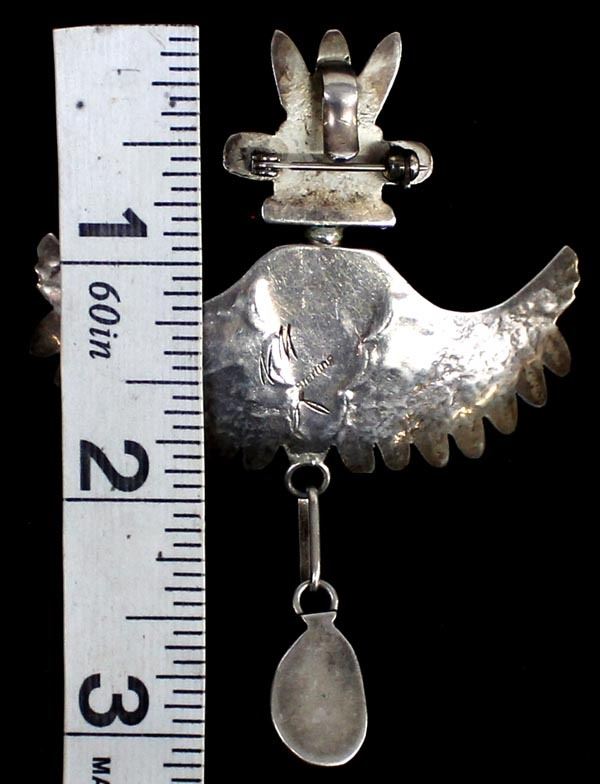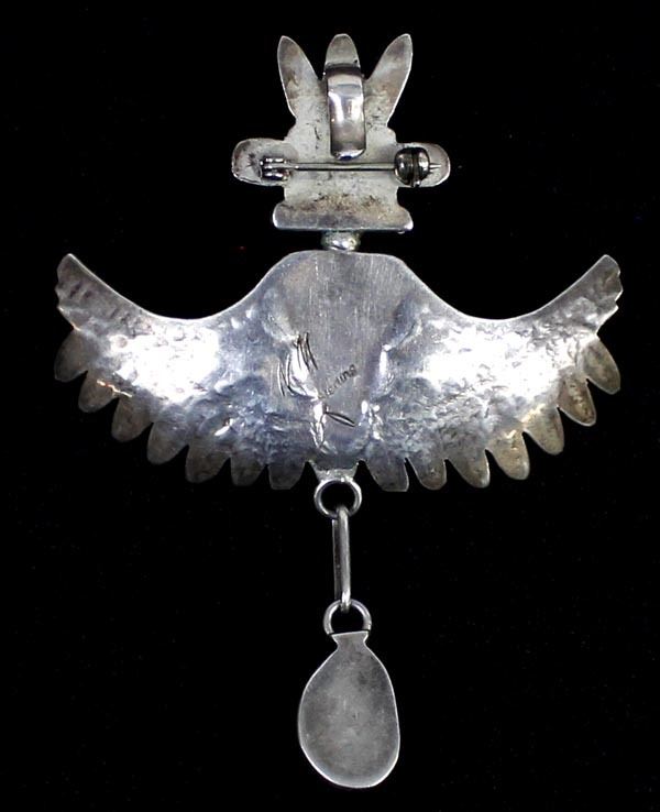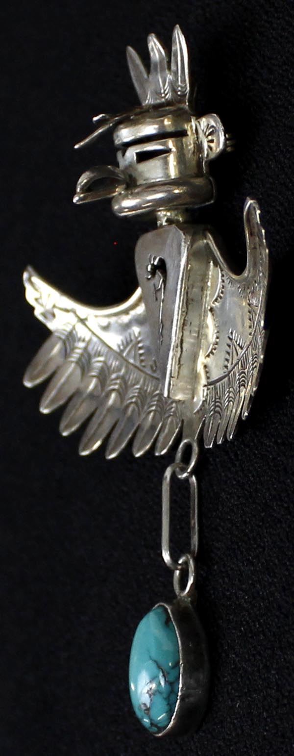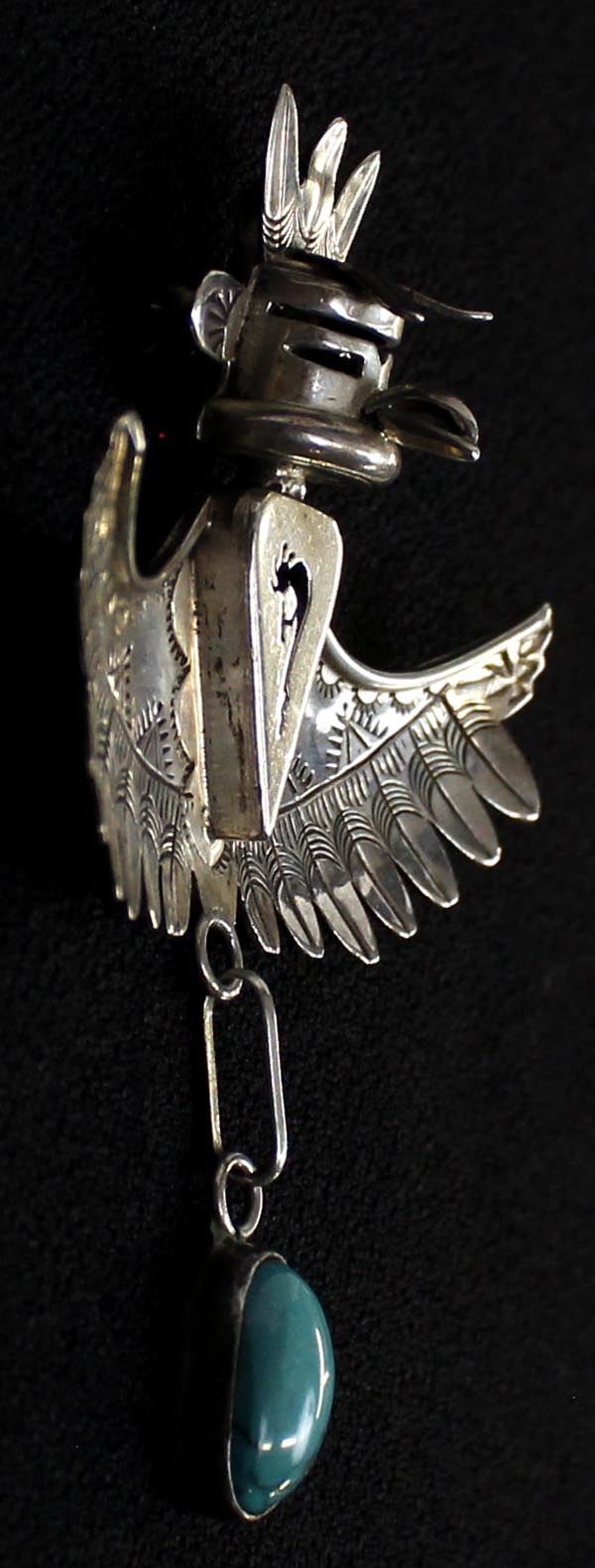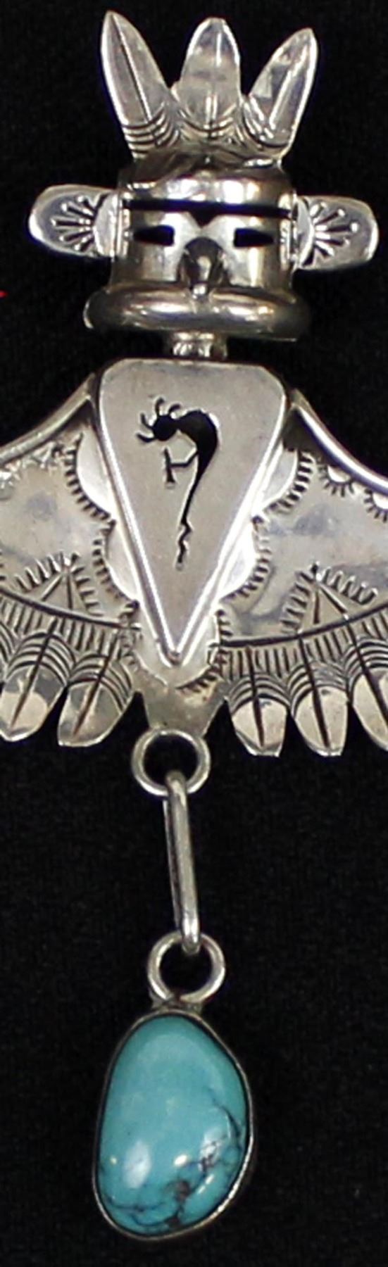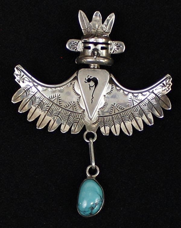 Native American Navajo Sterling Turquoise Eagle Kachina Pin Pendant by Nelson Morgan, hallmarked and stamped sterling, measures 2.5'' x 3''
