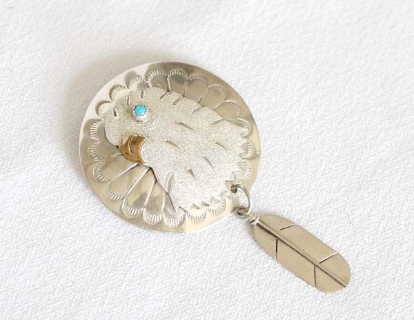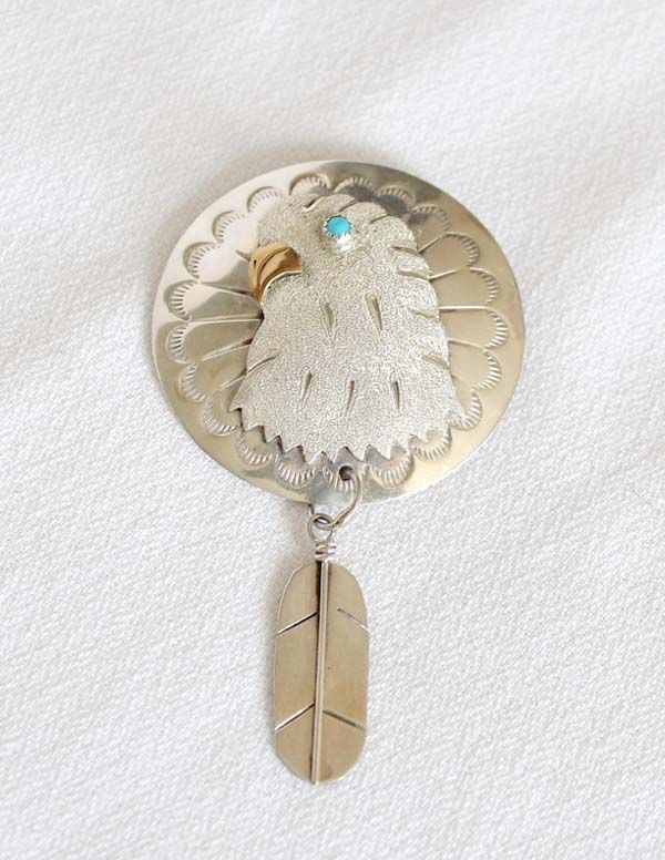 Navajo Sterling Turquoise Eagle Pin Pendant, stamped sterling, measures 2.75''L (includes feather drop) x 1.5'', 10.92g in total wt.