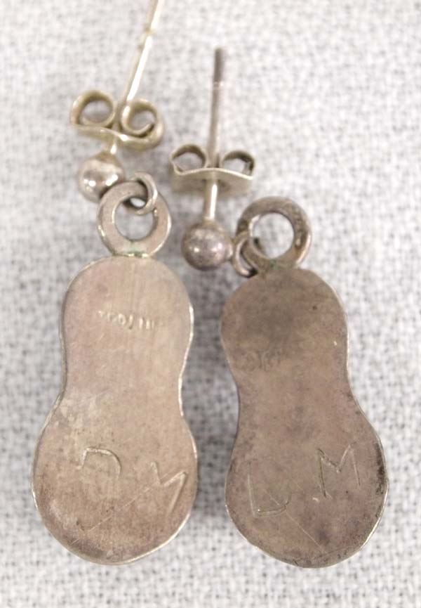 Native American Navajo Sterling Turquoise Earrings by D.M. Begay, measure 1''L x .25''W, stamped sterling and hallmarked DM, 3.15g in total wt.