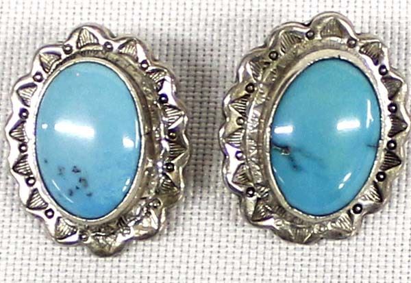 Native American Navajo Sterling Turquoise Earrings, measure .5'' x .75''