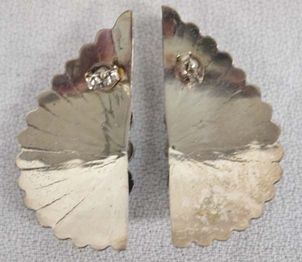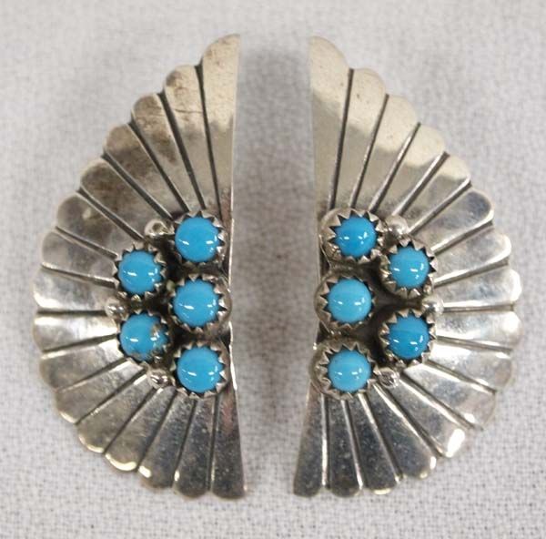 Navajo Sterling Turquoise Fan Shaped Earrings, measure 1.5''L x .75''W, 8.56g in total wt.
