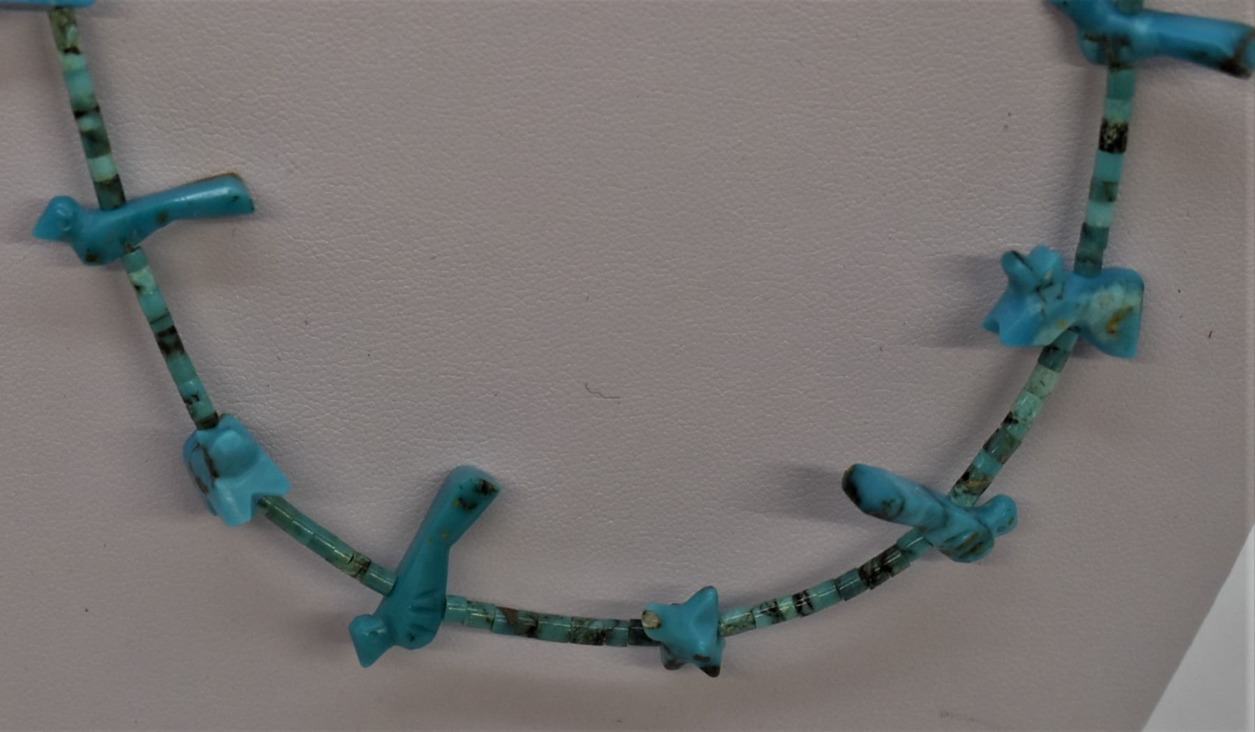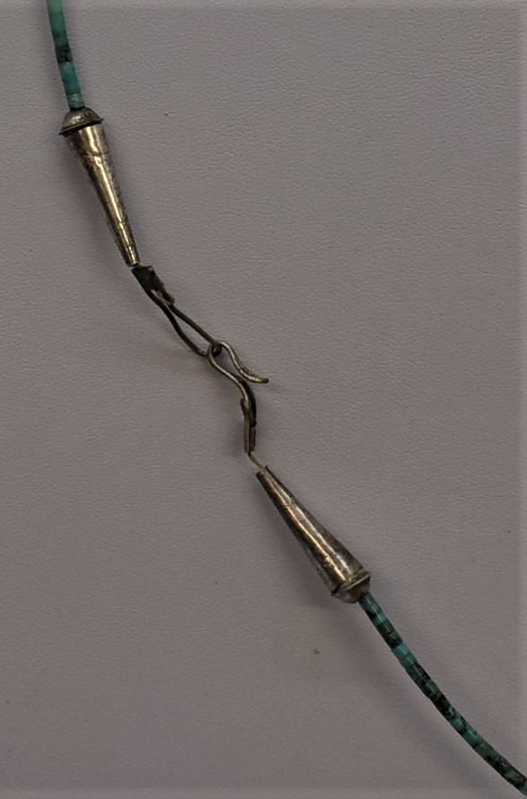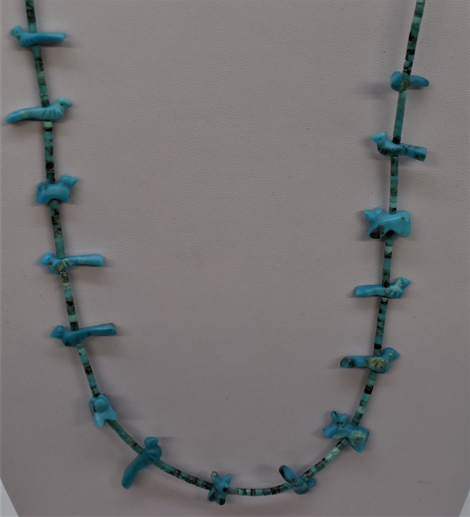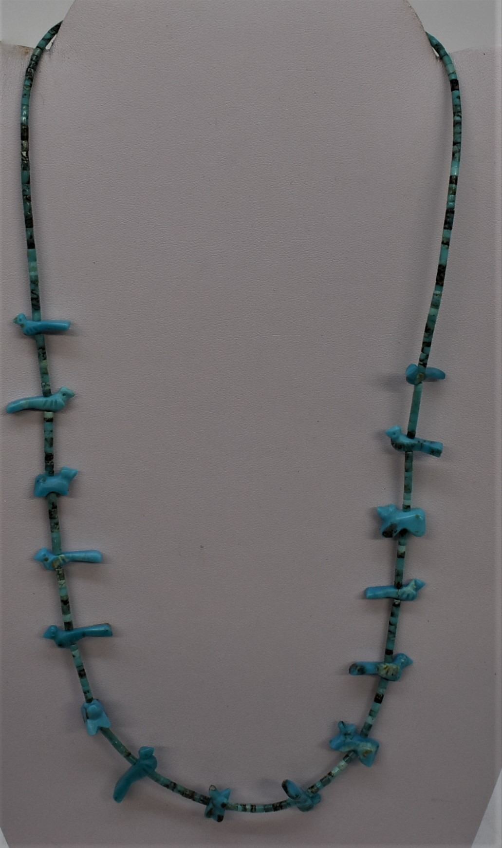 Native American Navajo Sterling Turquoise Fetish Necklace, sterling cones and accent beads, measures 24''L end to end, beautiful turquoise heishi beads