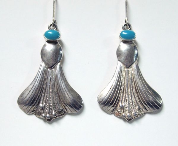 Navajo Sterling Turquoise Flower Earrings, measure 1.5''L x 1''W, stamped sterling and hallmarked
