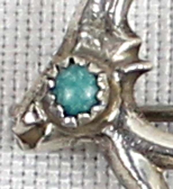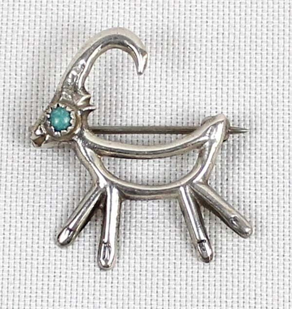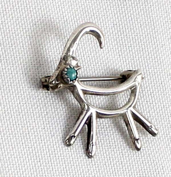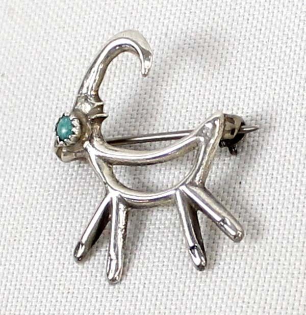 Native American Navajo Sterling Turquoise Goat Pin, measures 1'' x 1''
