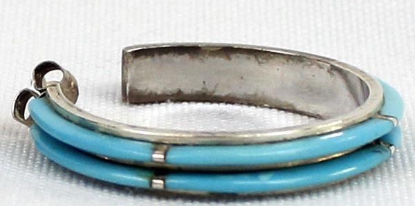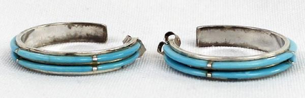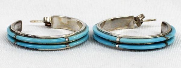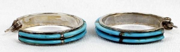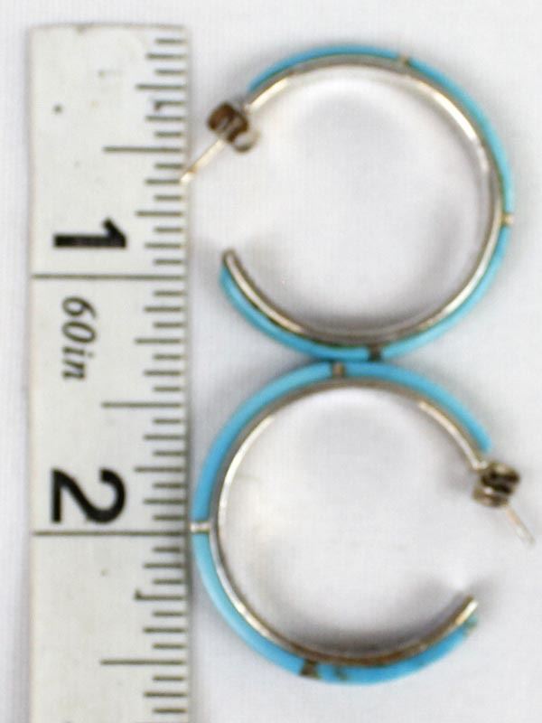 Native American Navajo Sterling Turquoise Hoop Earrings, measures 1.25'' x 1.25'', stamped sterling