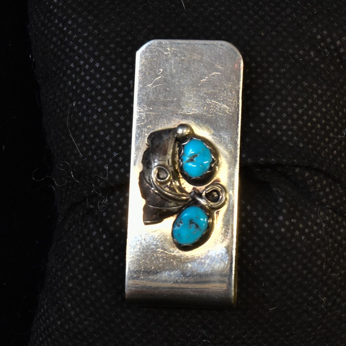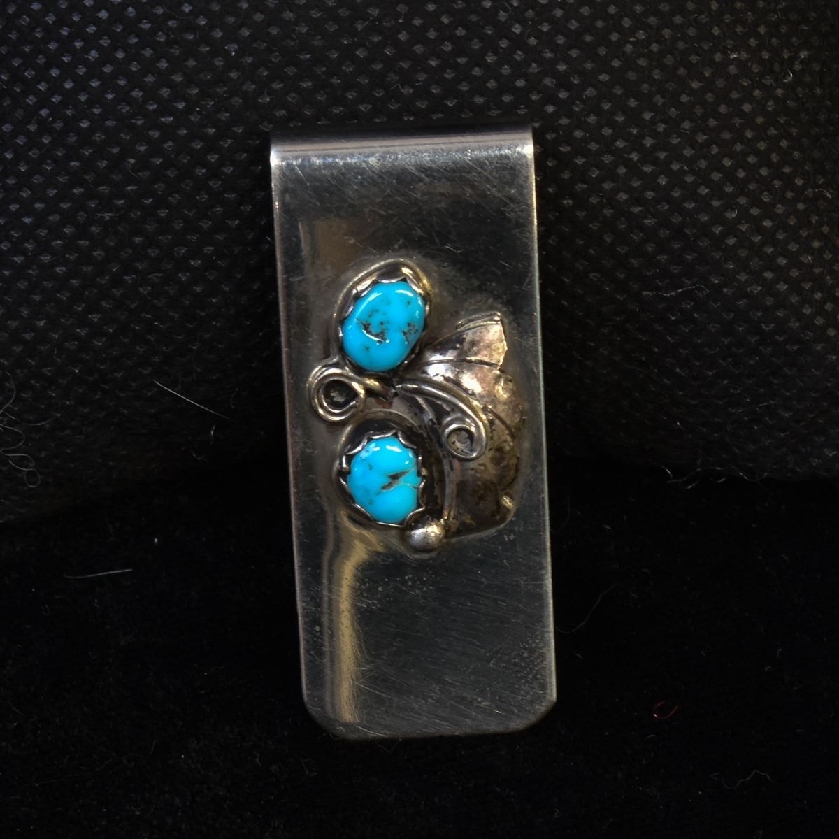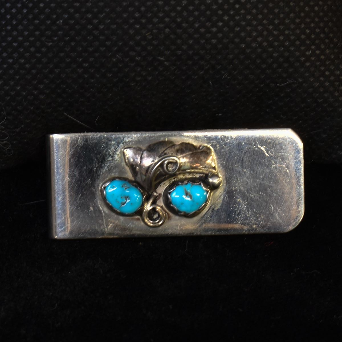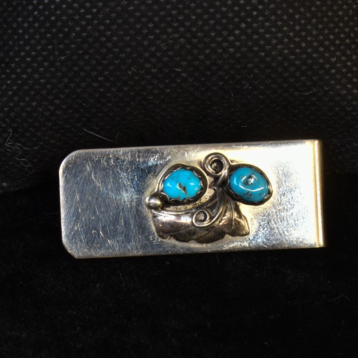 Navajo Sterling Turquoise Money Clip, Chischilly