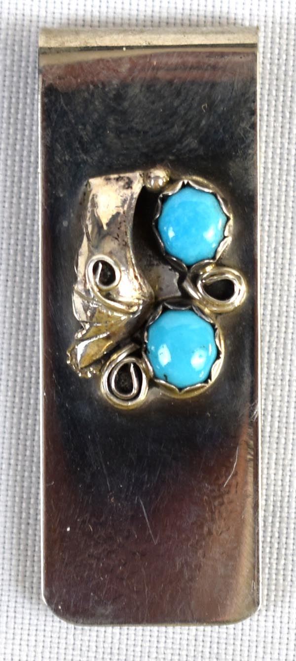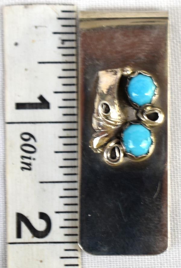Navajo Sterling Turquoise Money Clip measures 2" x .75"