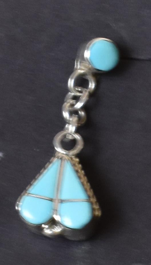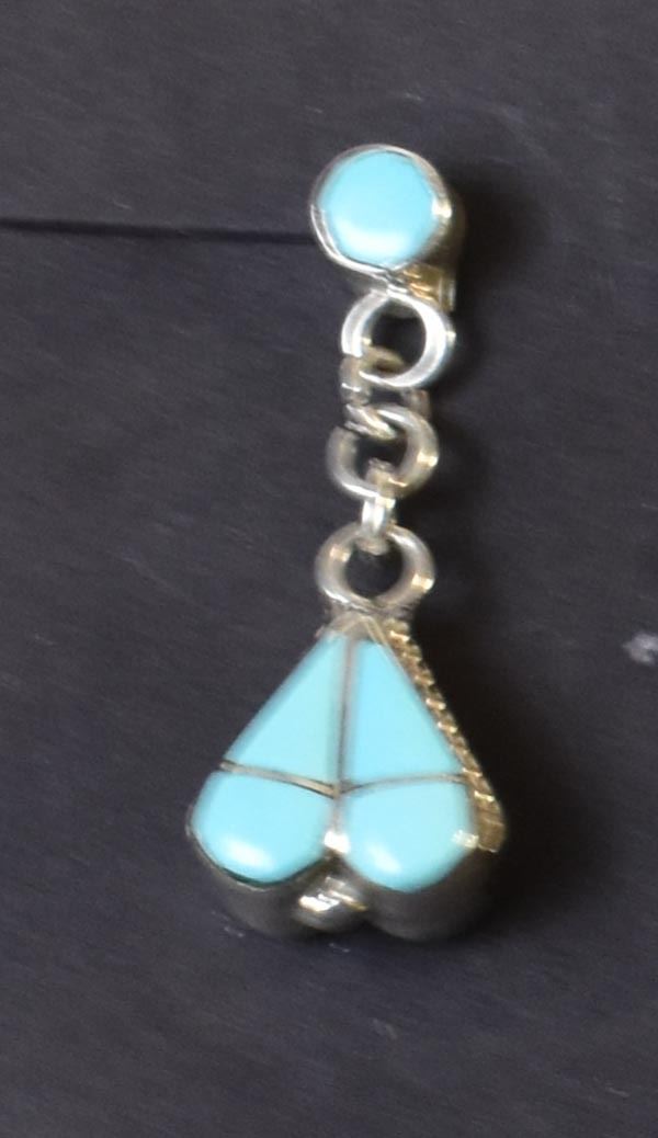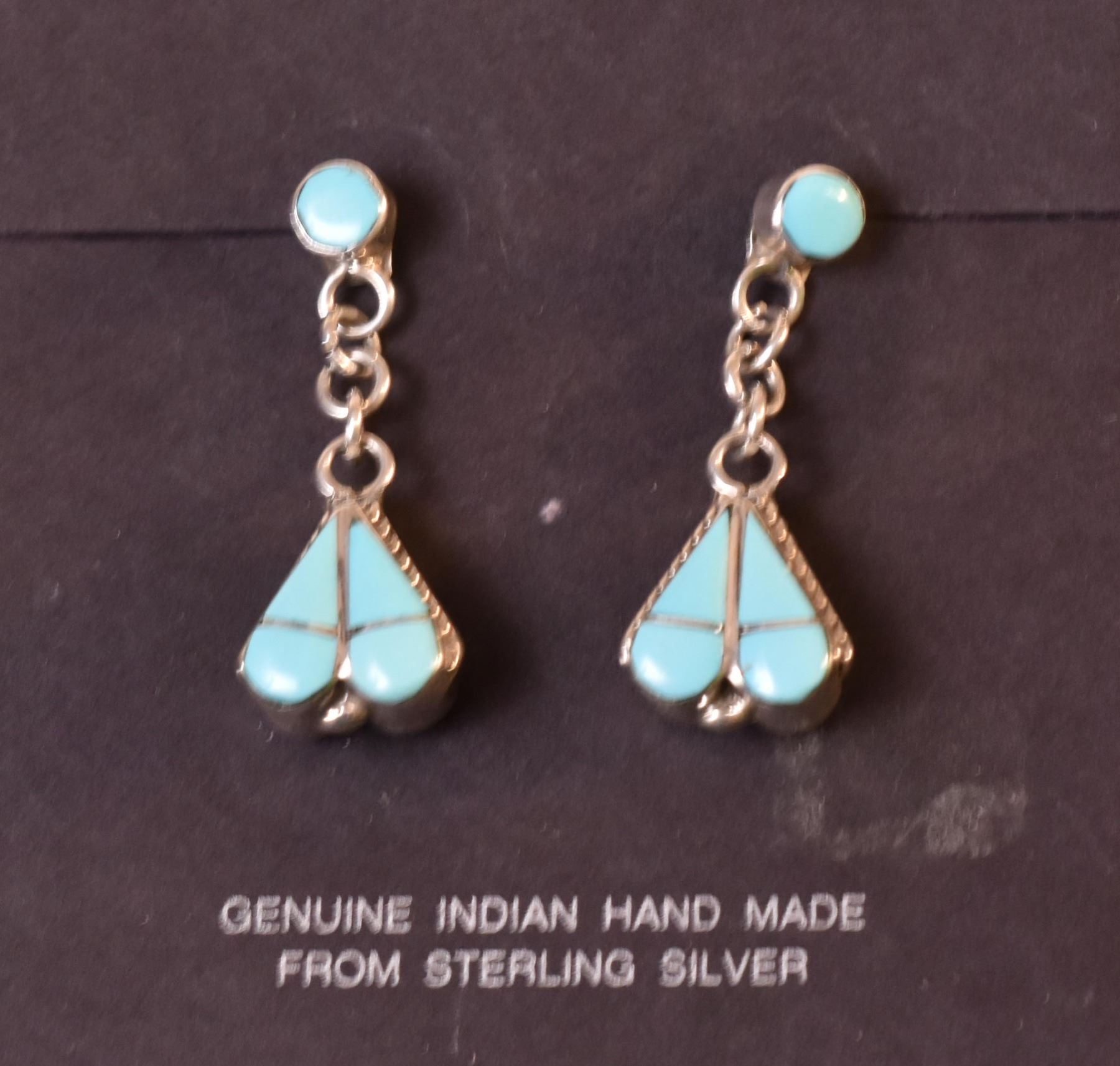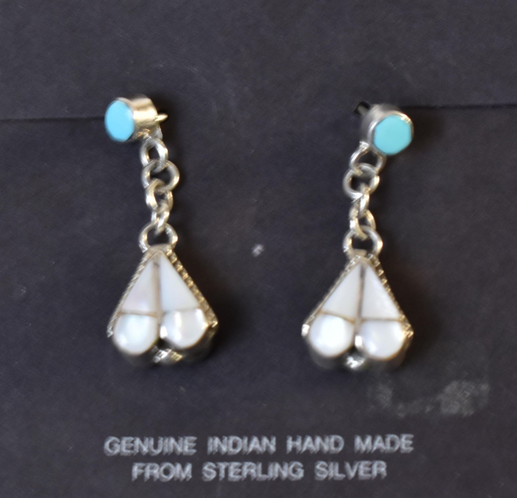 Native American Navajo Sterling Channel Inlay Turquoise on the front & Mother of Pearl on the back Earrings, measure 1.5'' x .5'', one side is turquoise and the other side is mother of pearl, gorgeous earrings