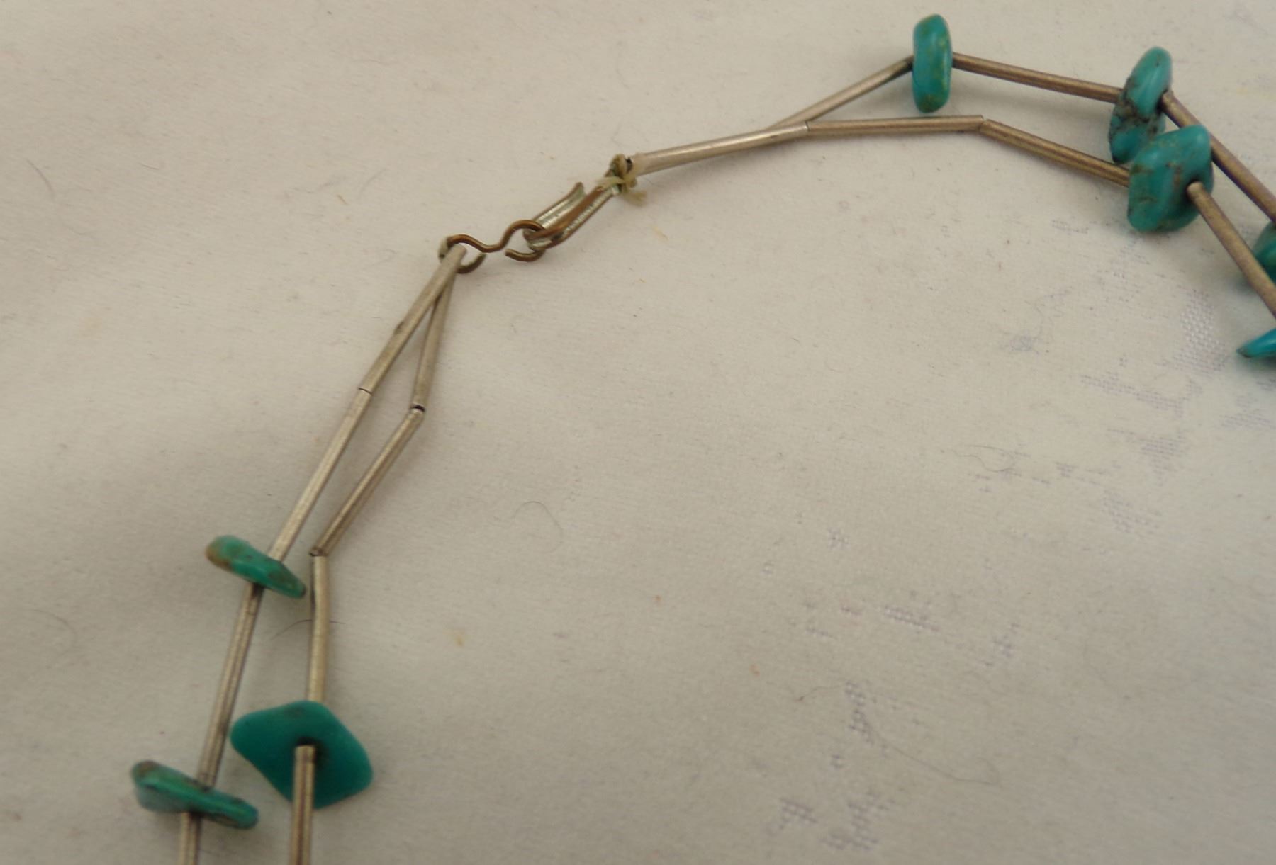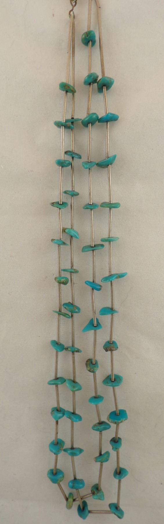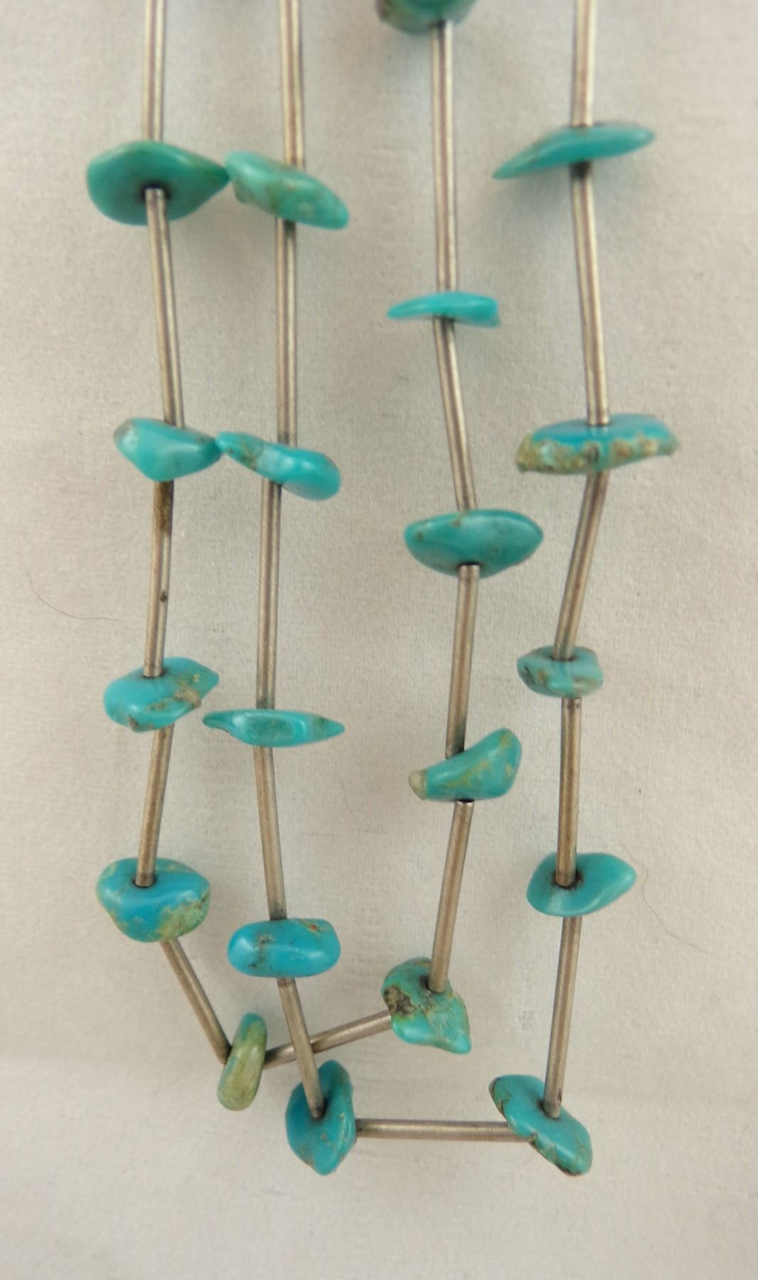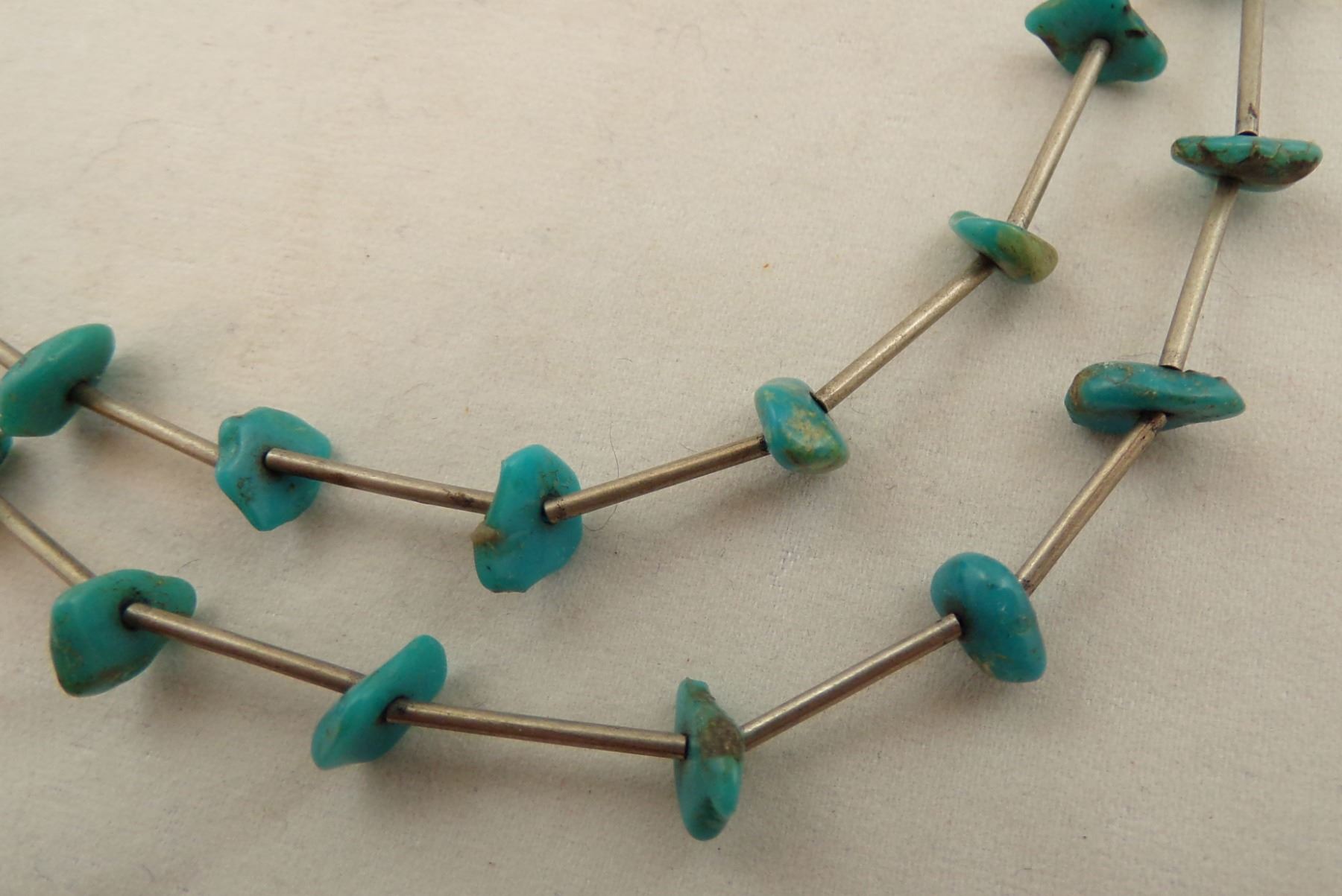 Native American Navajo Old Pawn 2 Strand Sterling Turquoise Nugget Necklace, measures 20''L end to end, nuggets range in size from .5'' to .75''