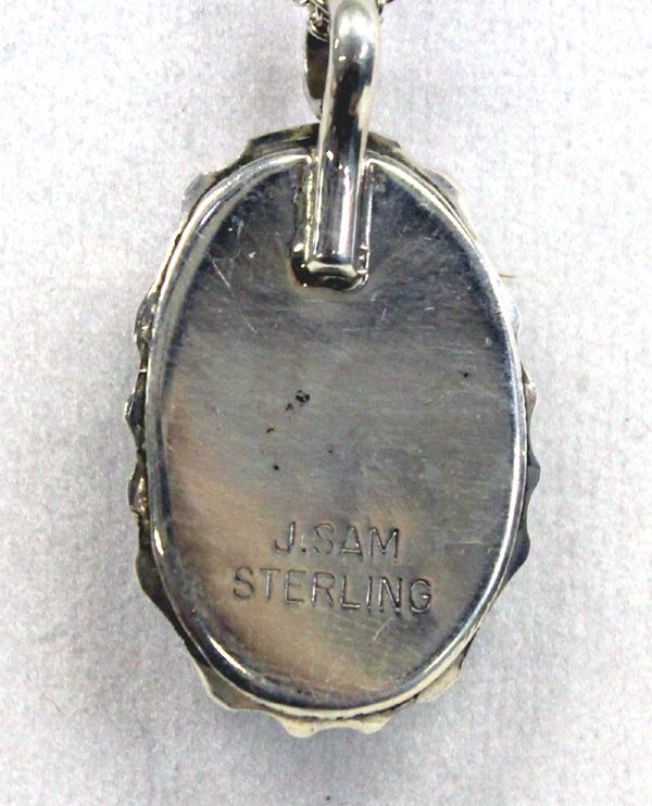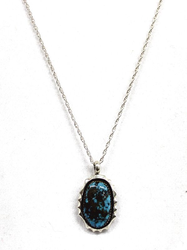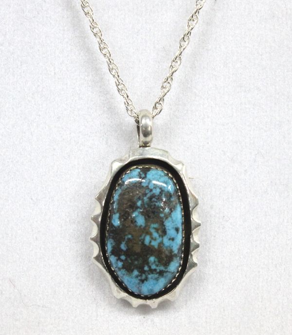 Navajo Sterling Kingman Turquoise Pendant Necklace, J. Sam, chain measures 21.5'' end to end, pendant measures 1 3/8''L x .75''W, stone measures 1'' x .5'', 11.1g in total wt.