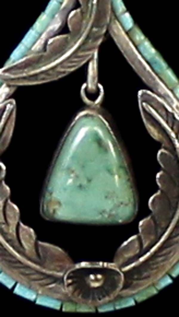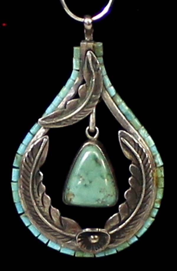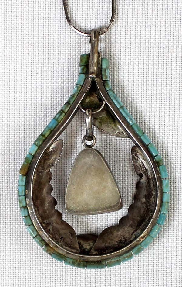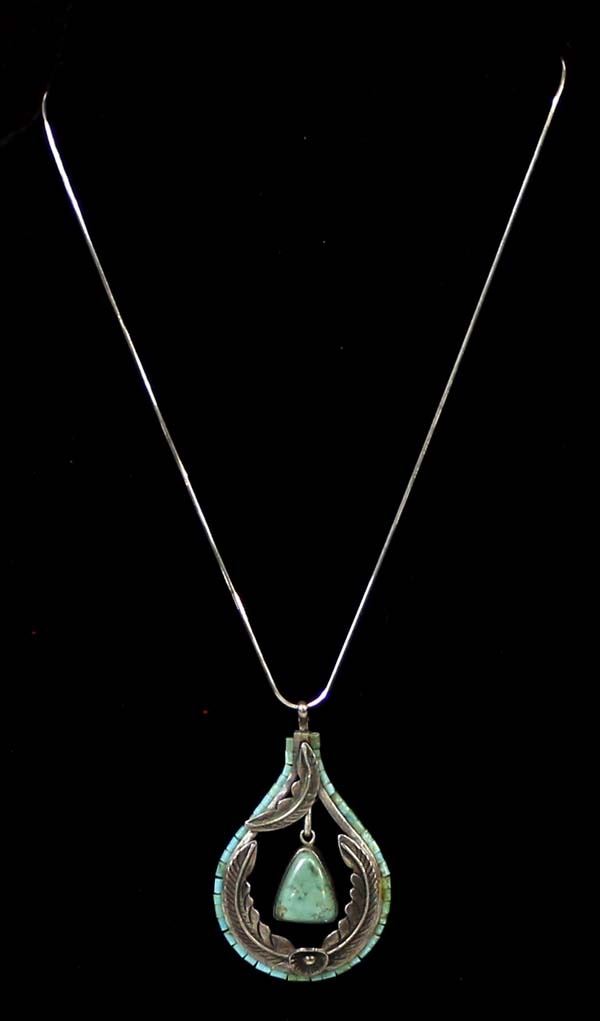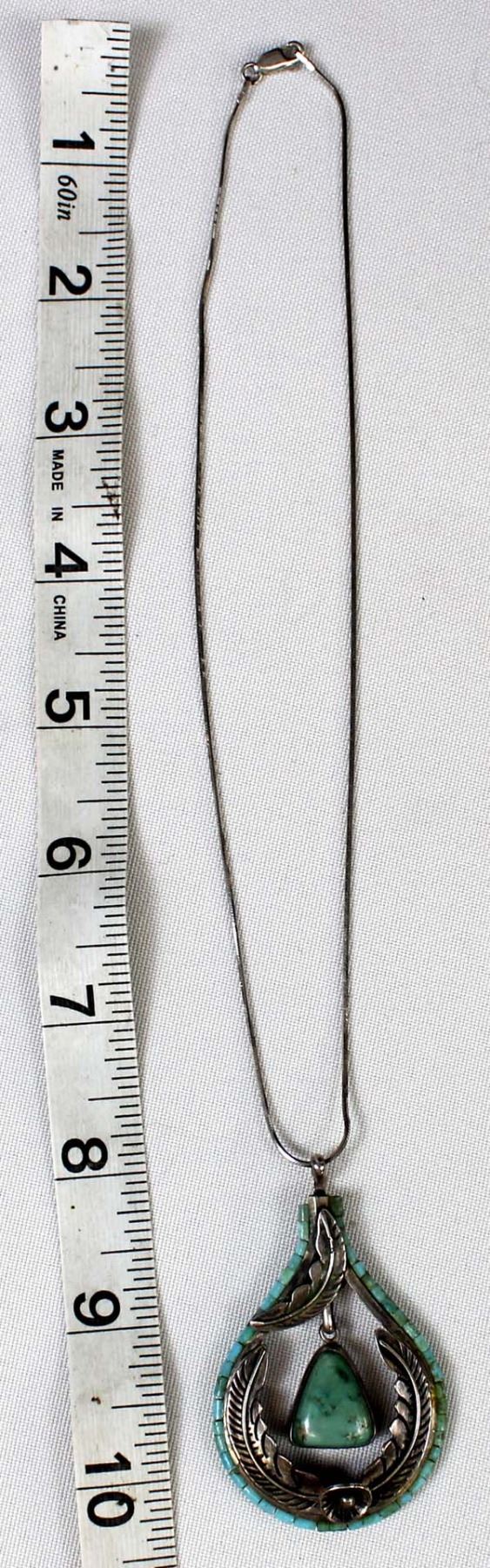 Vintage Native American Navajo Sterling Turquoise Pendant Necklace, pendant measures 2''L x 1.5'', Italian sterling chain measures 15''L end to end and is stamped Italy and .925