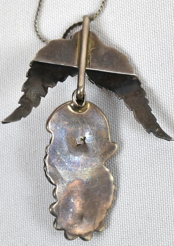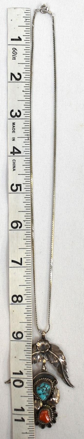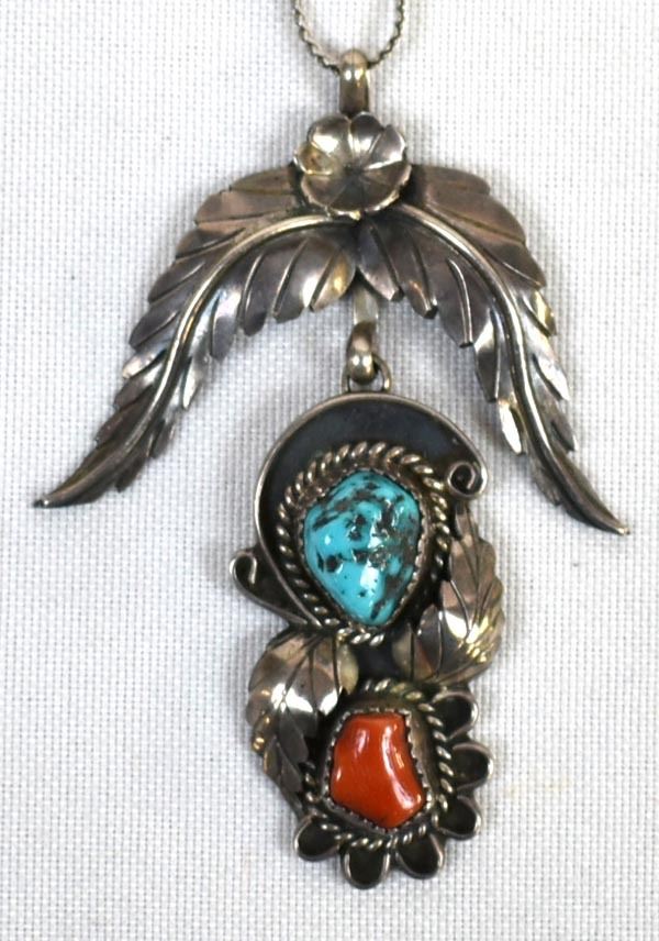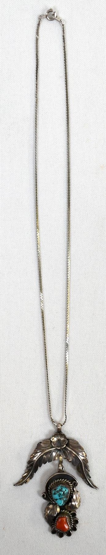 Vintage Native American Navajo Sterling Turquoise Pendant Necklace, chain measures 16''L end to end, pendant measures 2.5'' x 2'', hallmarked LY, possible artists, Leland Yazzie or Louise Yazzie