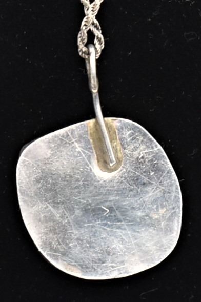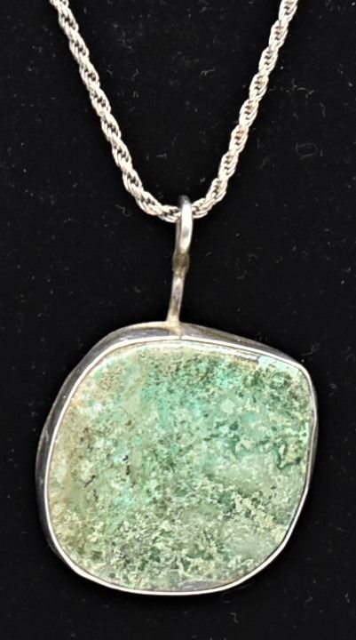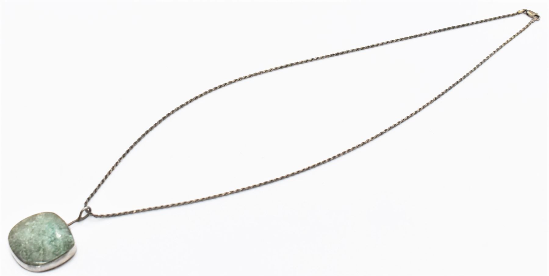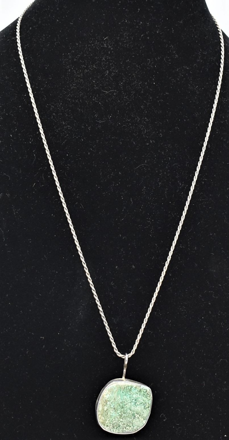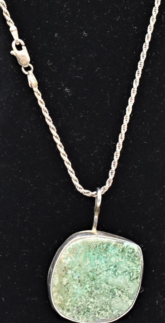 Vintage Native American Navajo Sterling Turquoise Pendant Necklace, pendant meausres 1.25'' x 1.25'', sterling rope chain measures 24''L end to end and is stamped .925, total gram wt. of 20.09