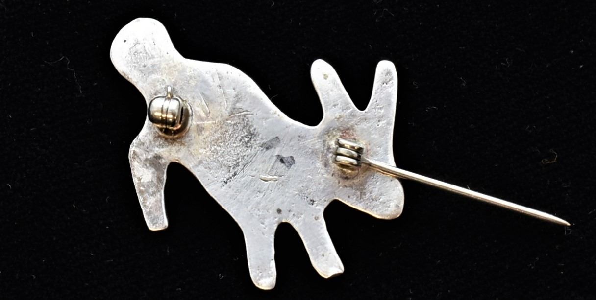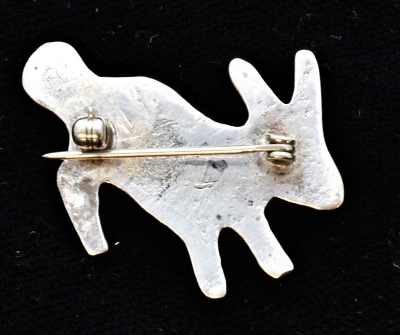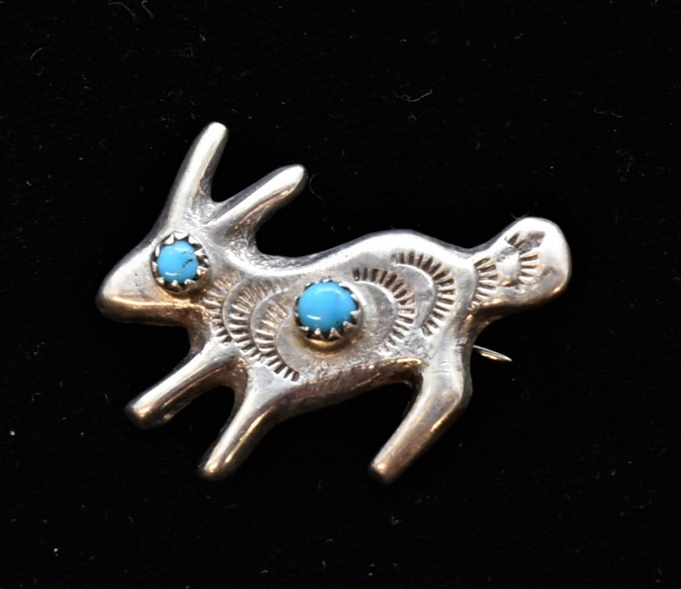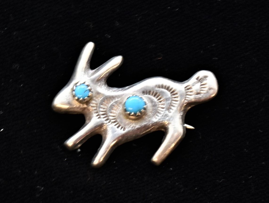 Native American Navajo Sterling Tufa Cast Turquoise Rabbit Pin, measures 1'' x 1.5'', total gram wt. of 7.95