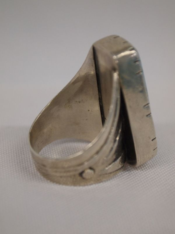 Navajo Sterling & Turquoise Ring, Signed JT. Vintage and super nice, heavy piece, 25.7 grams sterling silver set the a beautiful large turquoise cabochon with copper matrix. Size is 10 3/4, width 1 1/4''. This ring has it all! Looks! Age! and Quality!