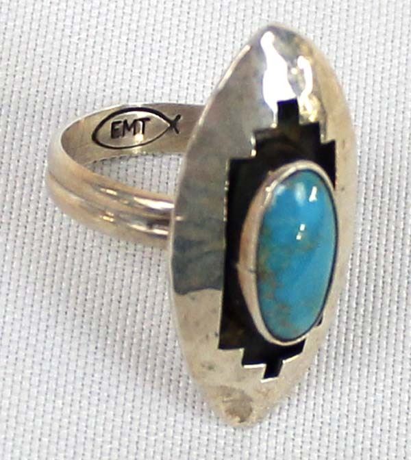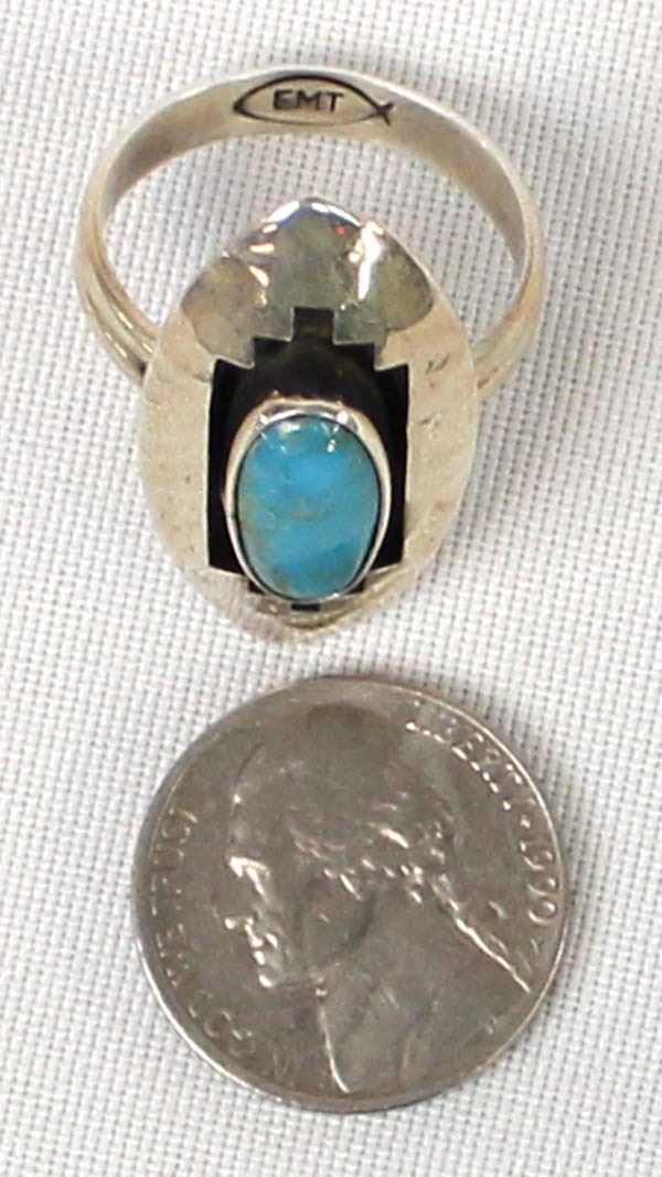 Native American Navajo Sterling Turquoise Ring by Everett and Mary Teller, Size 10.5, measures 1.25''L, hallmarked and stamped sterling