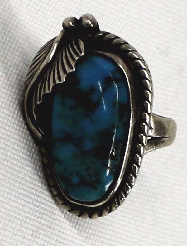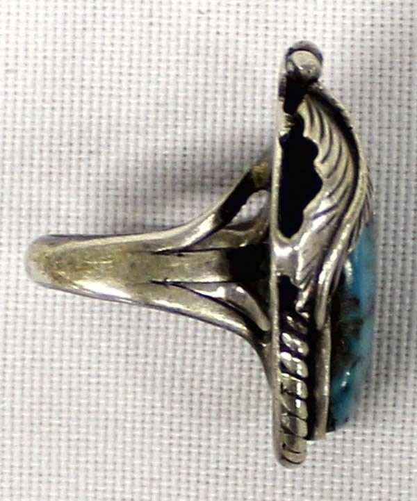 Native American Navajo Old Pawn Sterling Turquoise Ring, Size 4, measures 1 1/8''L x 7/8''W, beautiful turquoise cabochon