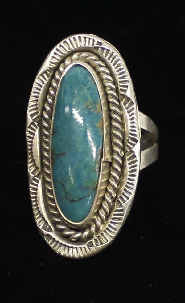 Native American Navajo Sterling & Turquoise Ring, Size 6.5, measures 1.5''