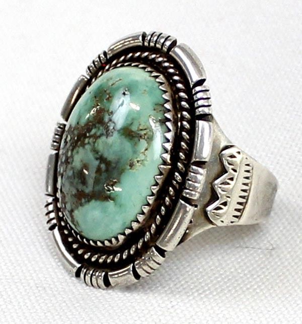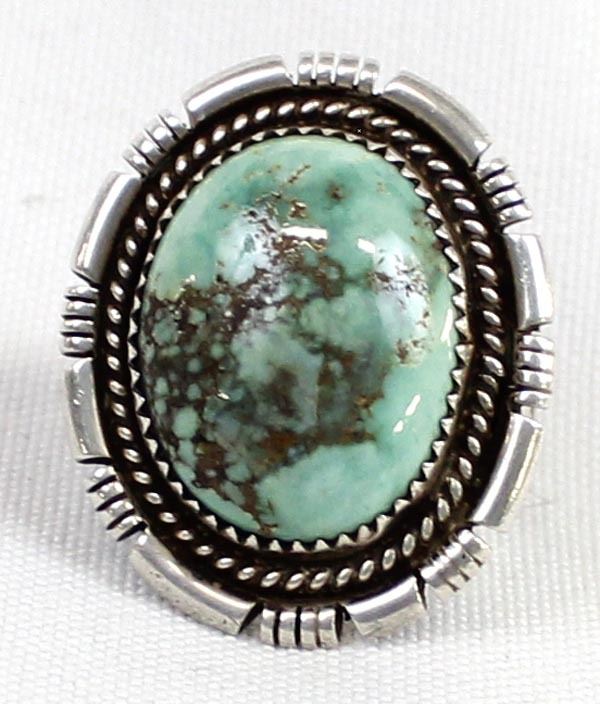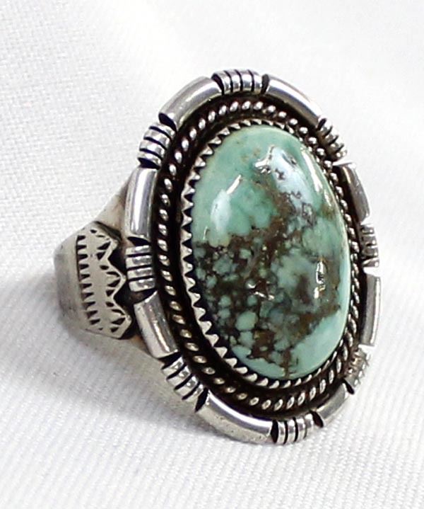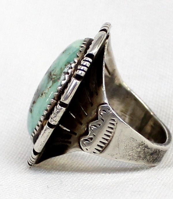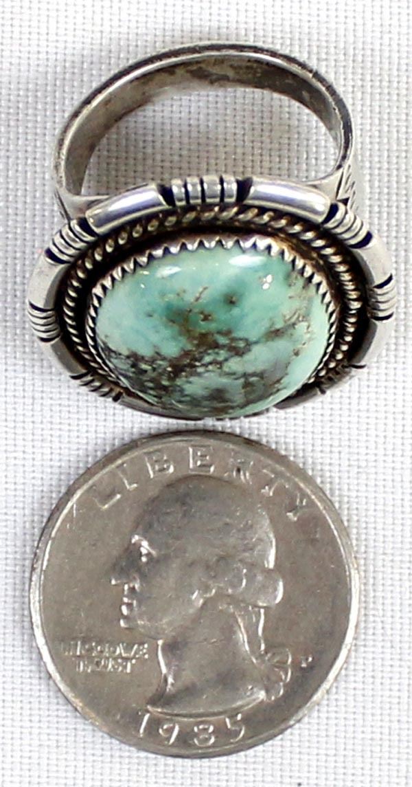 Native American Navajo Sterling Turquoise Ring, Size 8.5, measures 1.25''L x 1'', gorgeous turquoise