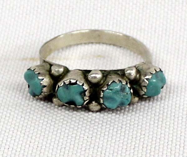 Native American Navajo Sterling Turquoise Ring, Size 8, measures .25''W