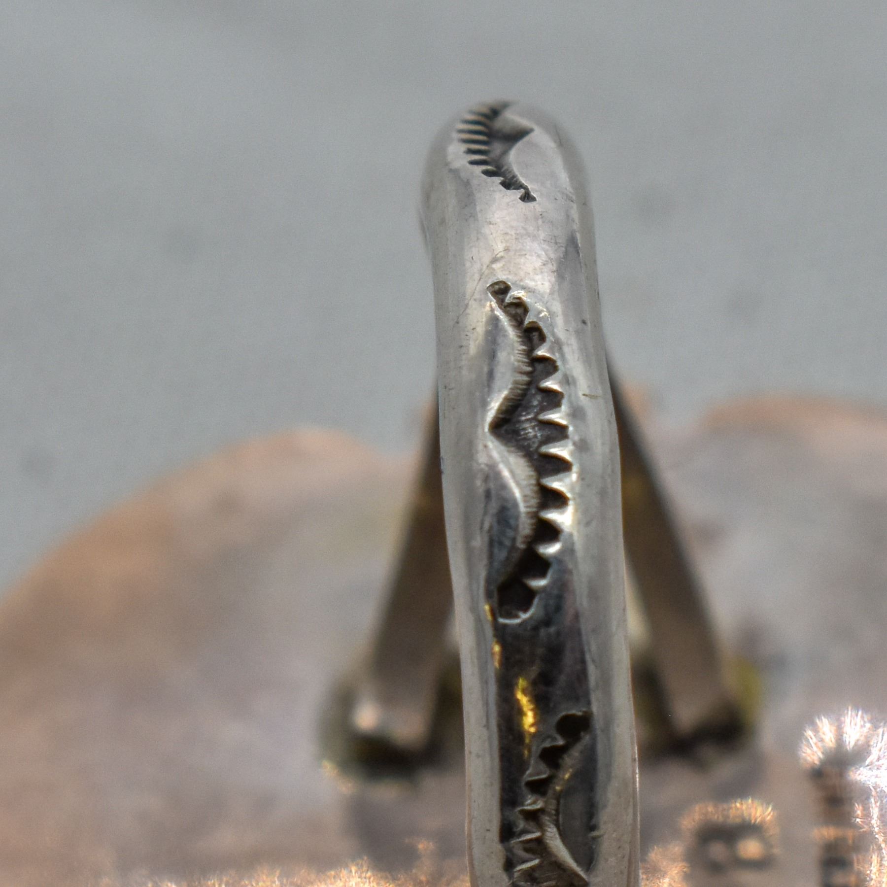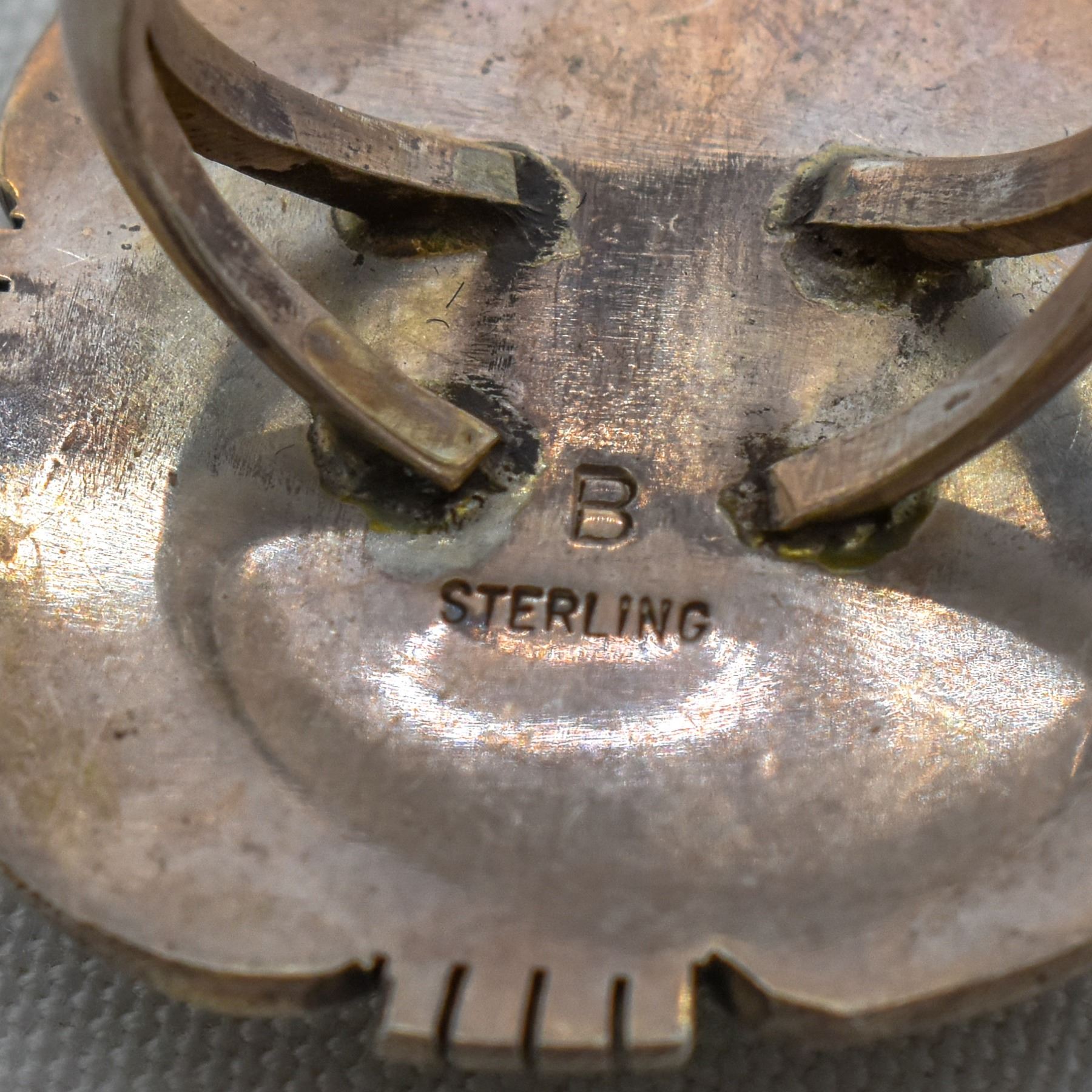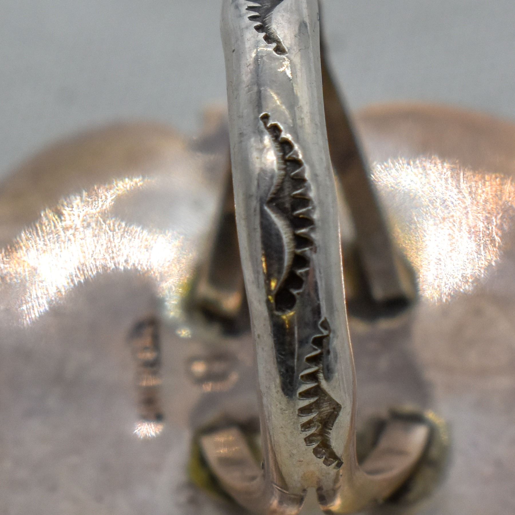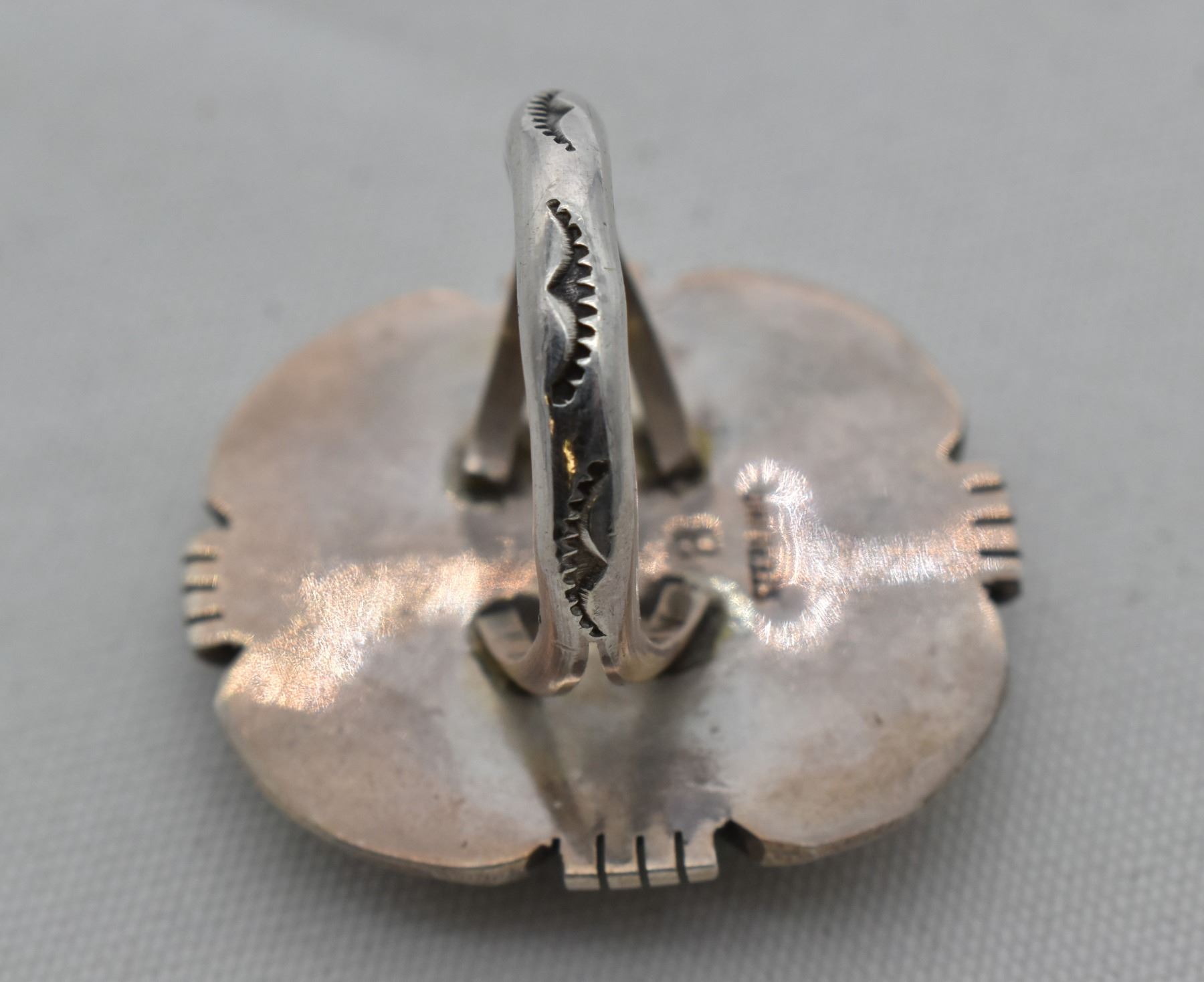 Native American Navajo Sterling Turquoise Ring by Billy Slim, Size 8, measures 1.25''L x 1''W, hallmarked B and stamped sterling