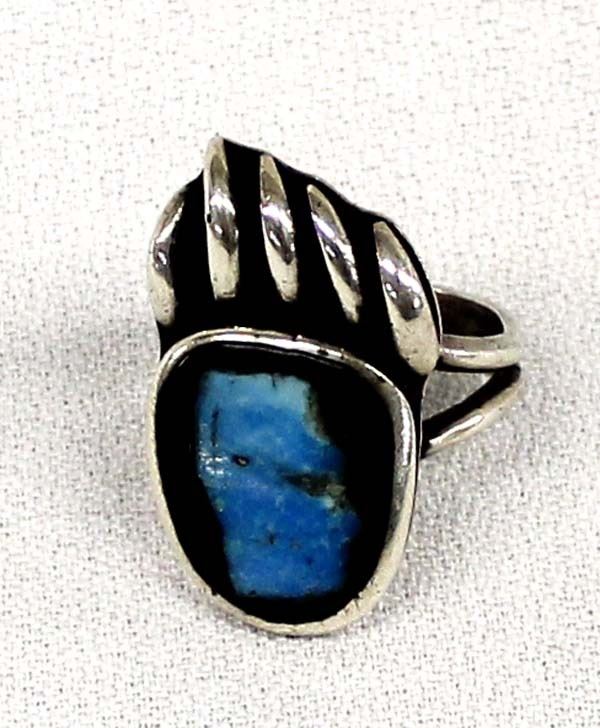 Native American Navajo Sterling Silver & Turquoise Bear Paw Ring, Size 9.25, measures 1 7/8''L x .75''W
