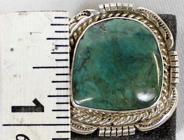 Native American Navajo Sterling Turquoise Ring, Size 9, measures 7/8'' x 1'', stamped sterling and hallmarked M
