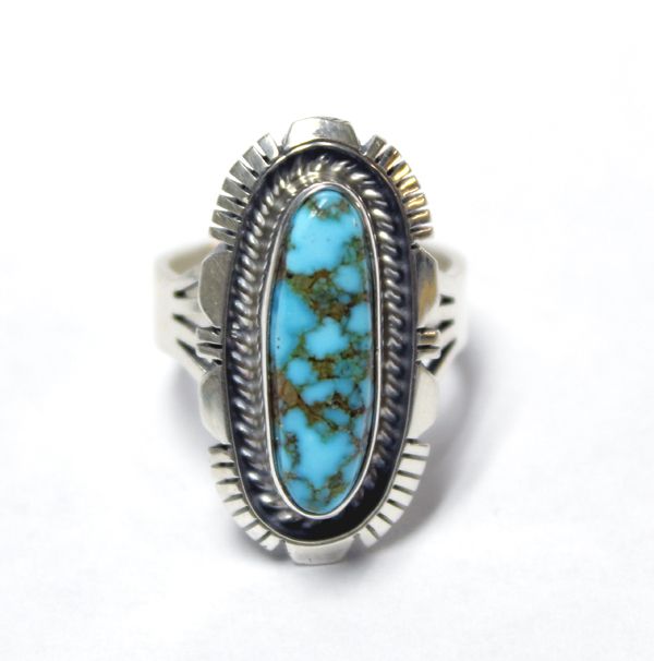 Navajo Sterling Turquoise Ring hallmarked RCC, traditional sterling silver set with a beautiful turquoise cabochon, size 7, 1.5''W