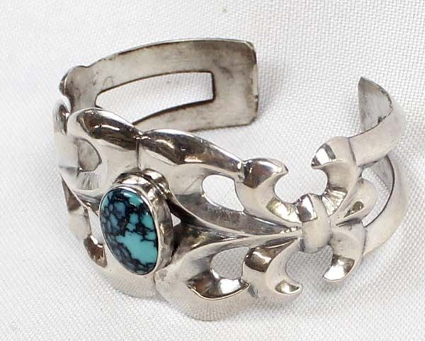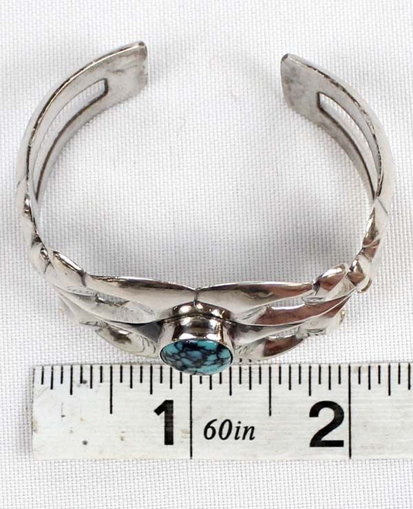 Native American Navajo Sterling & Turquoise Sand Cast Cuff Bracelet, inside measures 6.25'' (which includes the gap) x 1.25''W, 46.4 grams total wt.