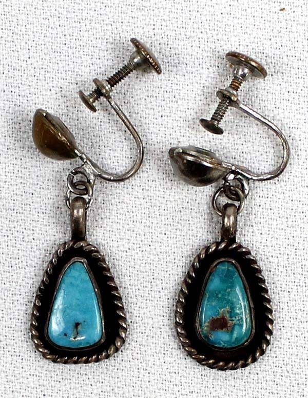Native American Navajo Sterling Turquoise Screwback Earrings, measure .5''L