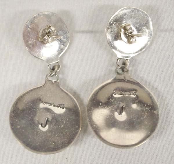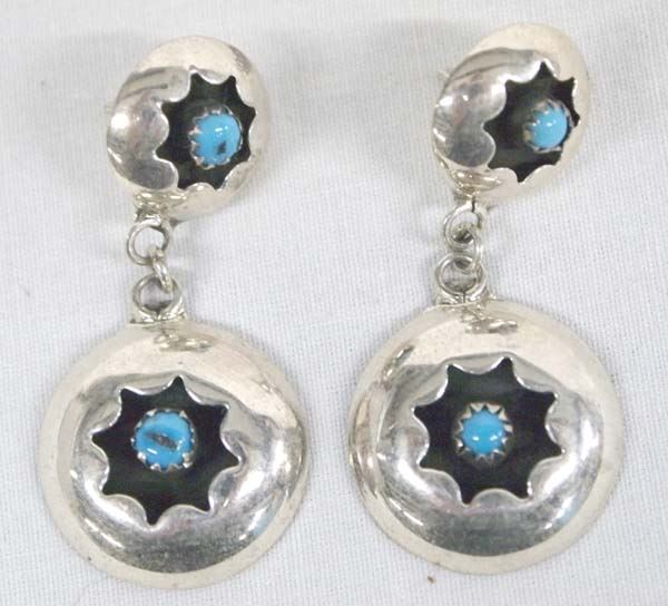 Native American Navajo Sterling Turquoise Shadowbox Earrings, measure 1.75''L x .75''W, hallmarked J and stamped sterling, 6.4g in total wt.