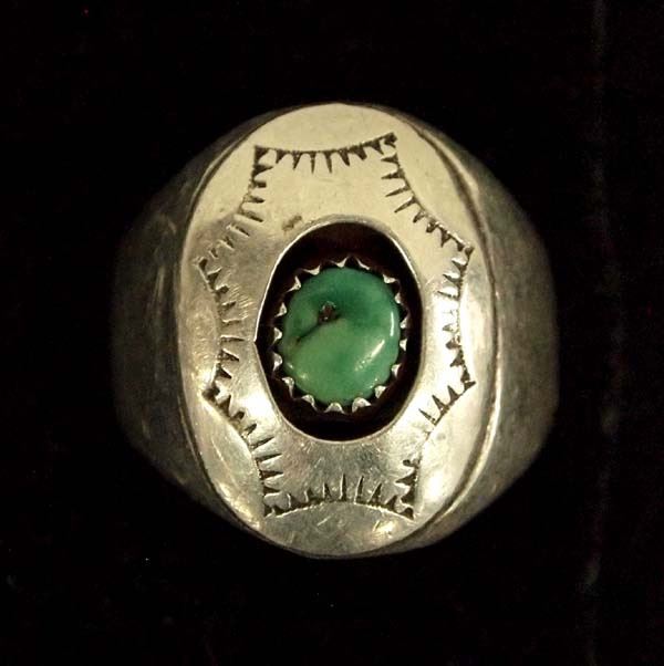 Native American Navajo Sterling Silver Turquoise Shadowbox Ring, Size 6.5, measures .75''W, 11.05g in total wt.