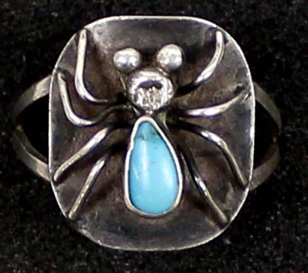 Navajo Sterling Turquoise Spider Ring, Size 8