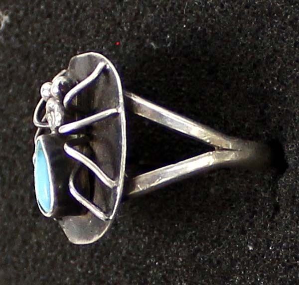 Native American Navajo Sterling Turquoise Spider Ring, Size 8, measures .5'' x .5''